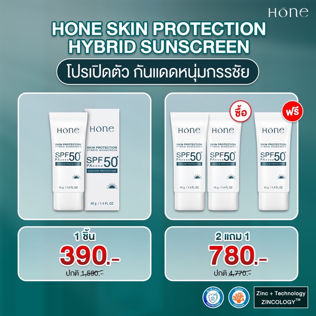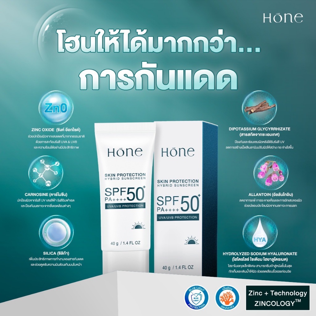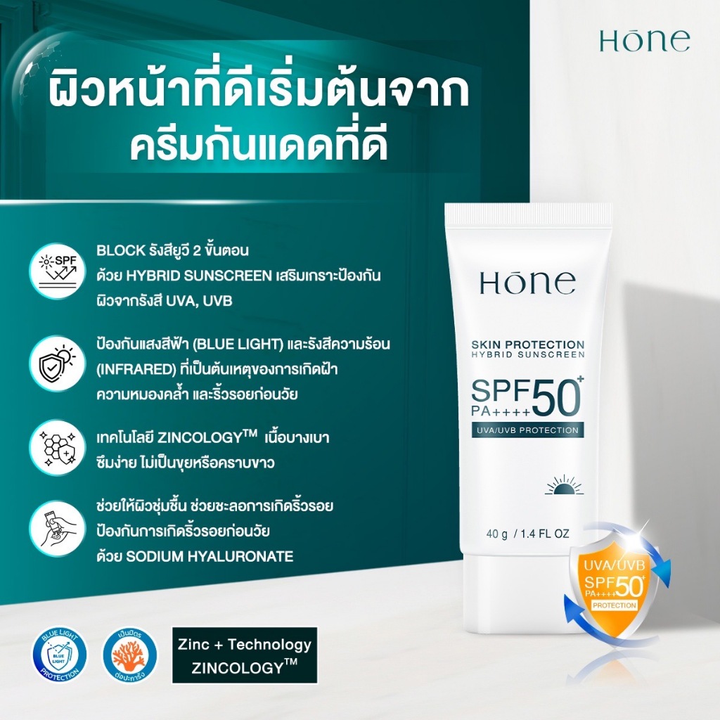 [2แถม1] Hone Skin protection hybrid sunscreen SPF50 PA++++ 40g โฮน สกิน โพรเทคชั่น ไฮบริด ซันสกรีน