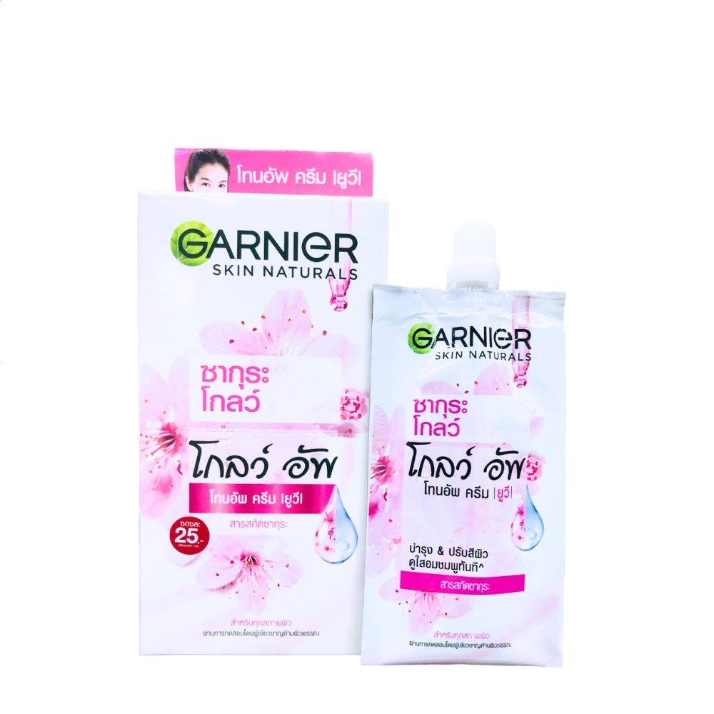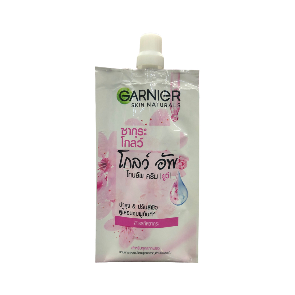 (1 ซอง) การ์นิเย่ ซากุระ โกลว์อัพ โทนอัพ ซีซี แบบซอง 7 กรัม Garnier sakura white pink up Tone Up CC Cream