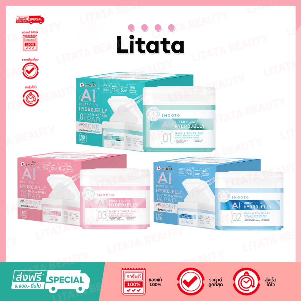 Smooto โทนเนอร์แพด Hydrojelly Mask & Toner Pad 80แผ่น 180 กรัม มี 3 สูตร