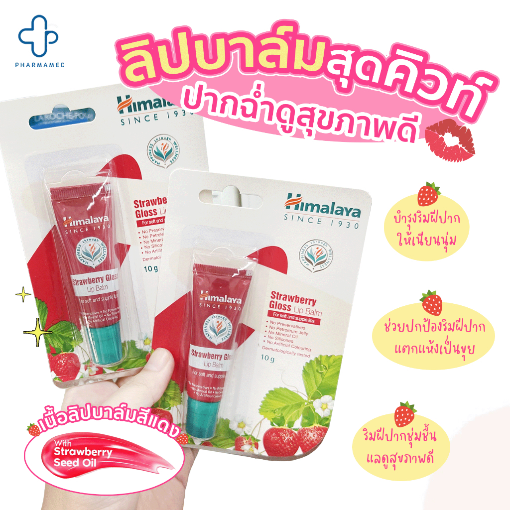 Himalaya Strawberry Gloss Lip Balm 10g ฮิมาลายา ลิปบาล์ม ลิป บาล์ม บำรุง ปาก ทาปาก บำรุงปาก หิมาลายา ปากแห้ง ปากดำ