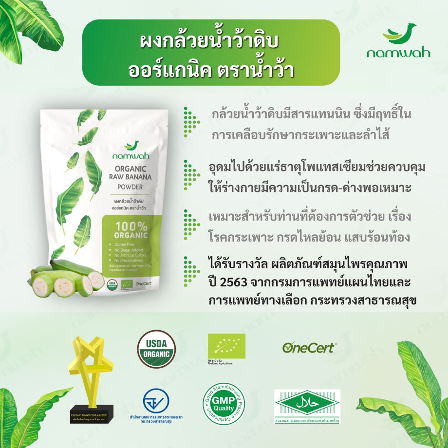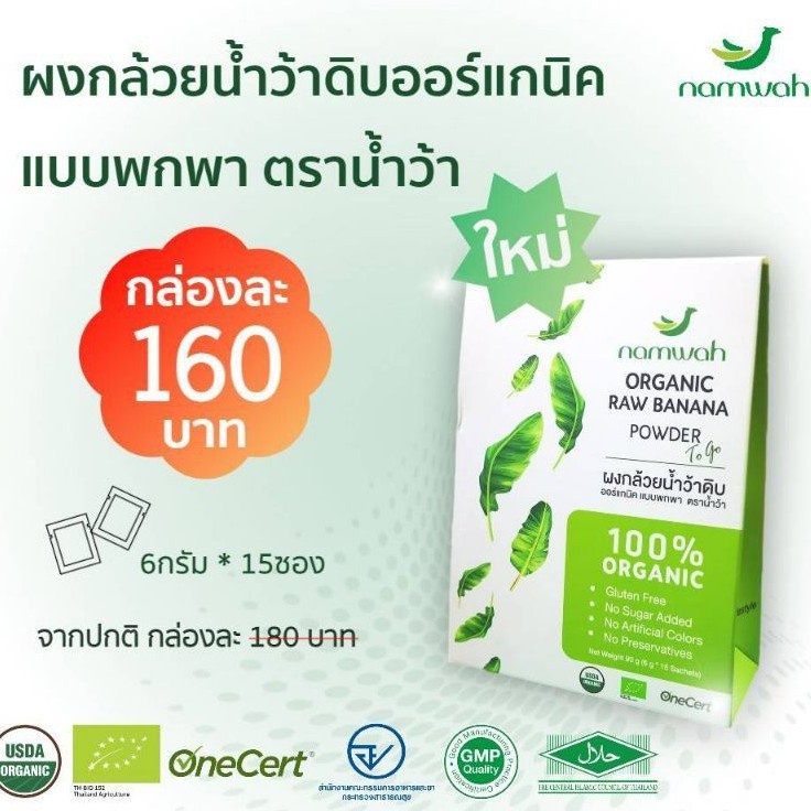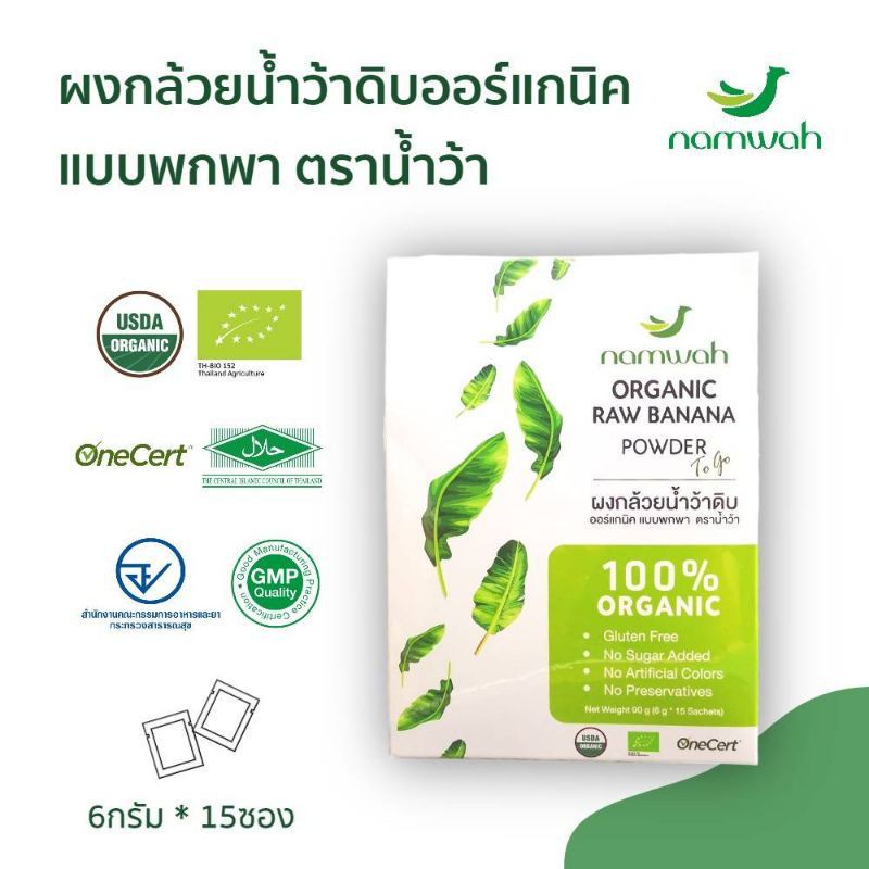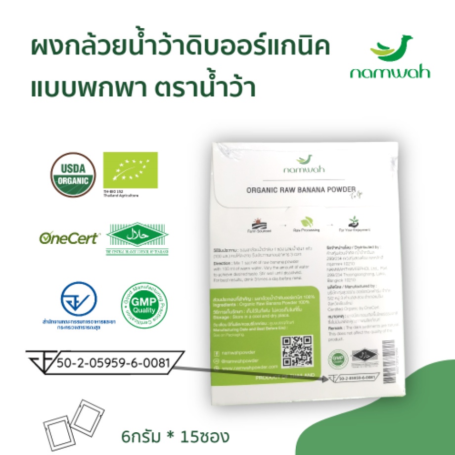 Namwah ผงกล้วยน้ำว้าดิบออร์แกนิคแบบพกพา Organic Raw Banana Powder (To Go) (15 x 6g)