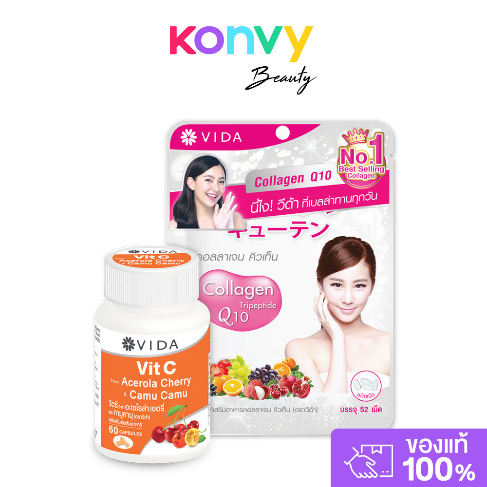 Vida Set 2 Items Collagen Q10 52 Tablets + Vit C 60 Capsules เซทผลิตภัณฑ์เสริมอาหาร.