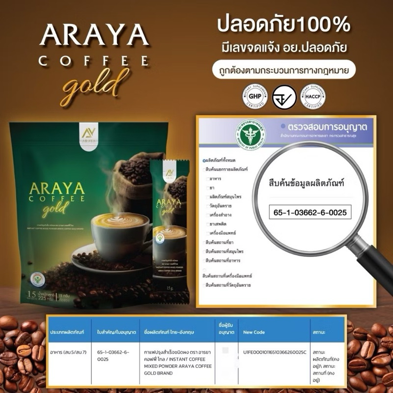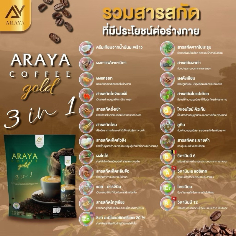 อารยา คอฟฟี่ โกล Araya Coffee Gold (1 ห่อ มี 15 ซอง)