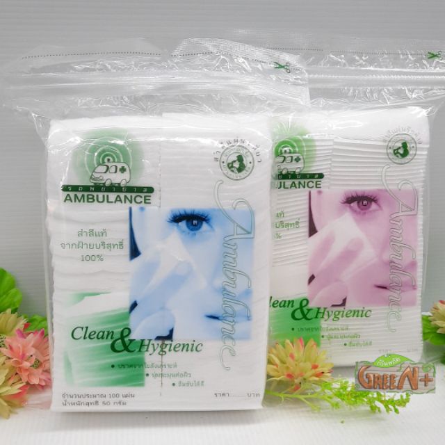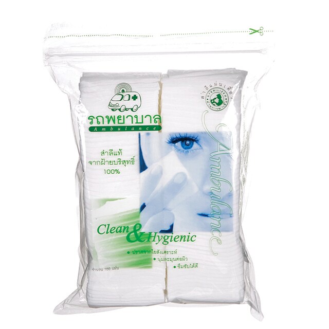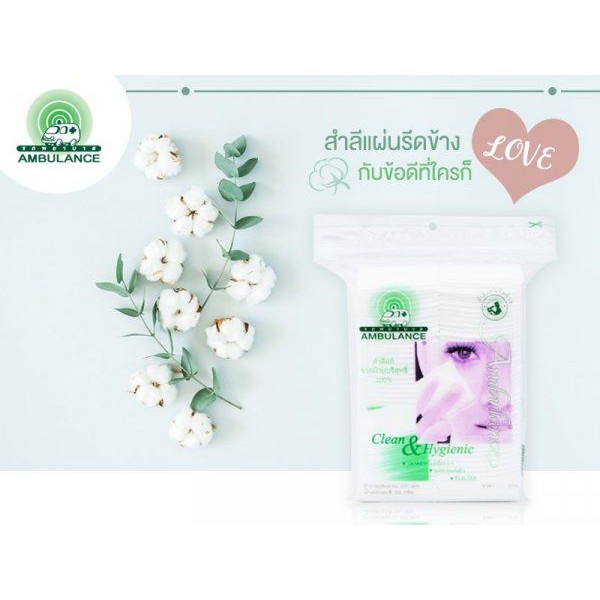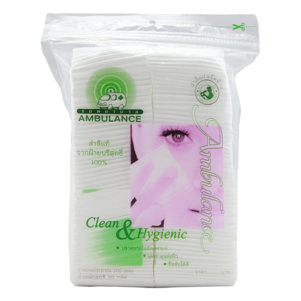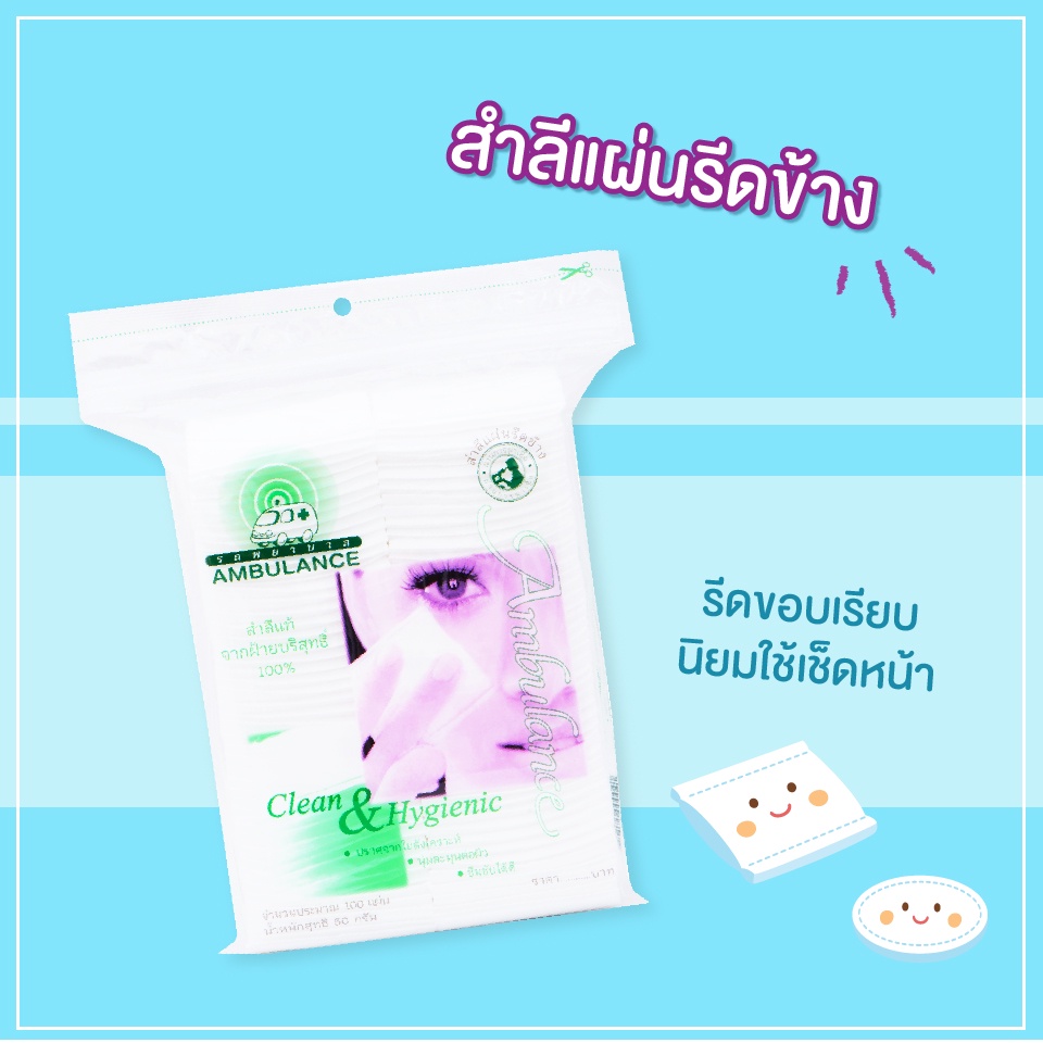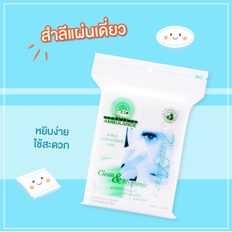 รถพยาบาล สำลีแผ่น แผ่นเดี่ยว/รีดข้าง 100 แผ่น ผลิตจากฝ้ายธรรมชาติ ซึมซับได้ดี อ่อนนุ่มอย่างเป็นธรรมชาติ