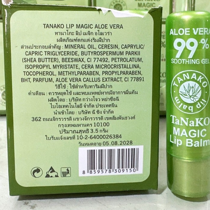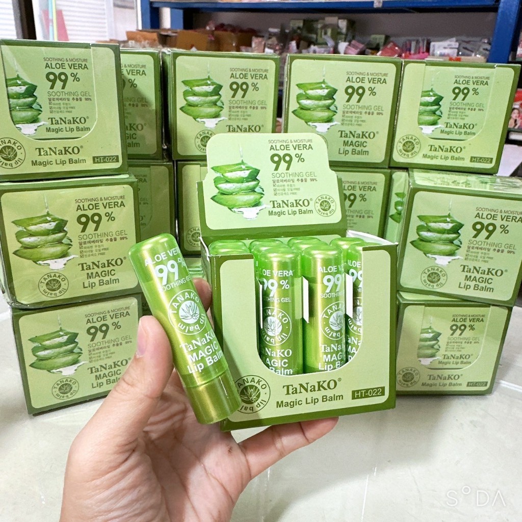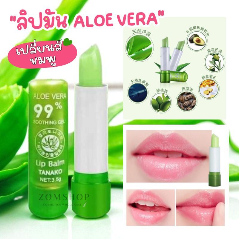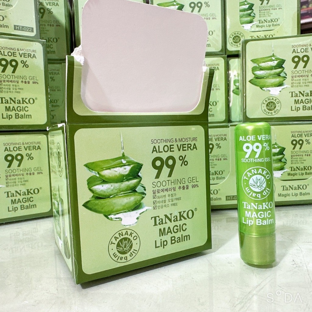 【1ชิ้น】ลิปมัน อโลเวล่า 99%【เปลี่ยนสี "ชมพู"】TANAKO LIP MAGIC ALOE VERA 99% 35.G