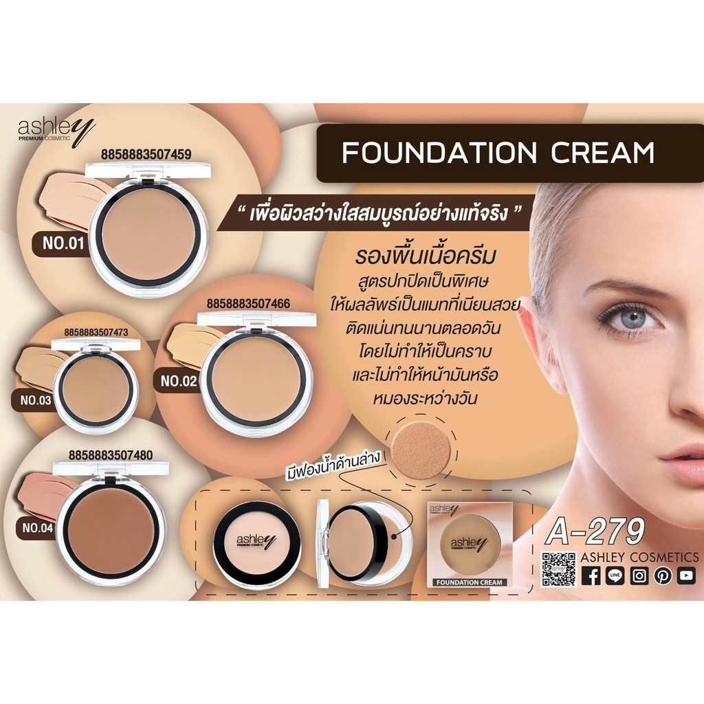 🌟 รองพื้นเนื้อครีม สูตรปกปิดพิเศษ แอชลีย์ ASHLEY FOUNDATION CREAM A-279