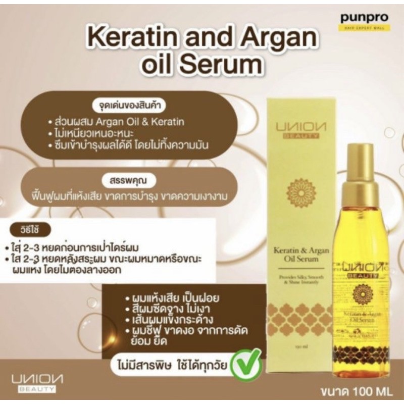 Union Keratin & Argan Oil Hair ยูเนี่ยน บิวตี้ แฮร์ เคราติน