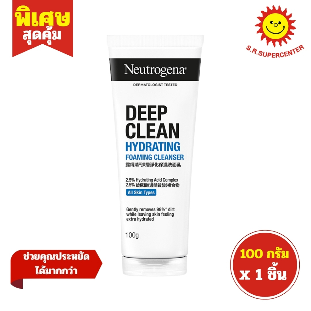 [ 1ชิ้น ] Neutrogena Deep Clean นูโทรจีนา ดีพ คลีน ไฮเดรตติ้ง โฟมมิ่ง คลีนเซอร์ ขนาด 100 กรัม (1ชิ้น)