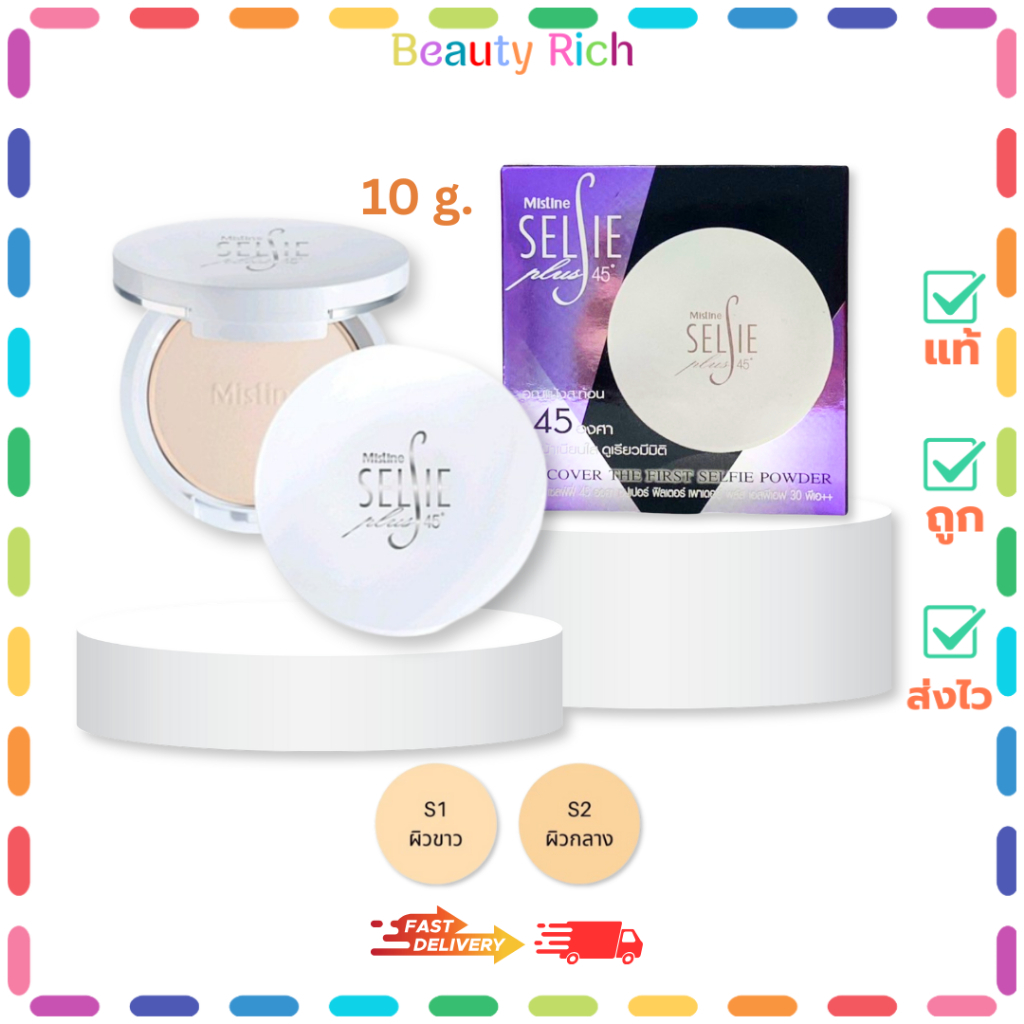 (1 ตลับ) Mistine Selsie 45˚ - มิสทิน เซลฟ์ฟี่ 45 องศา แป้งมิสทิน 2 เฉดสี (10 g.)