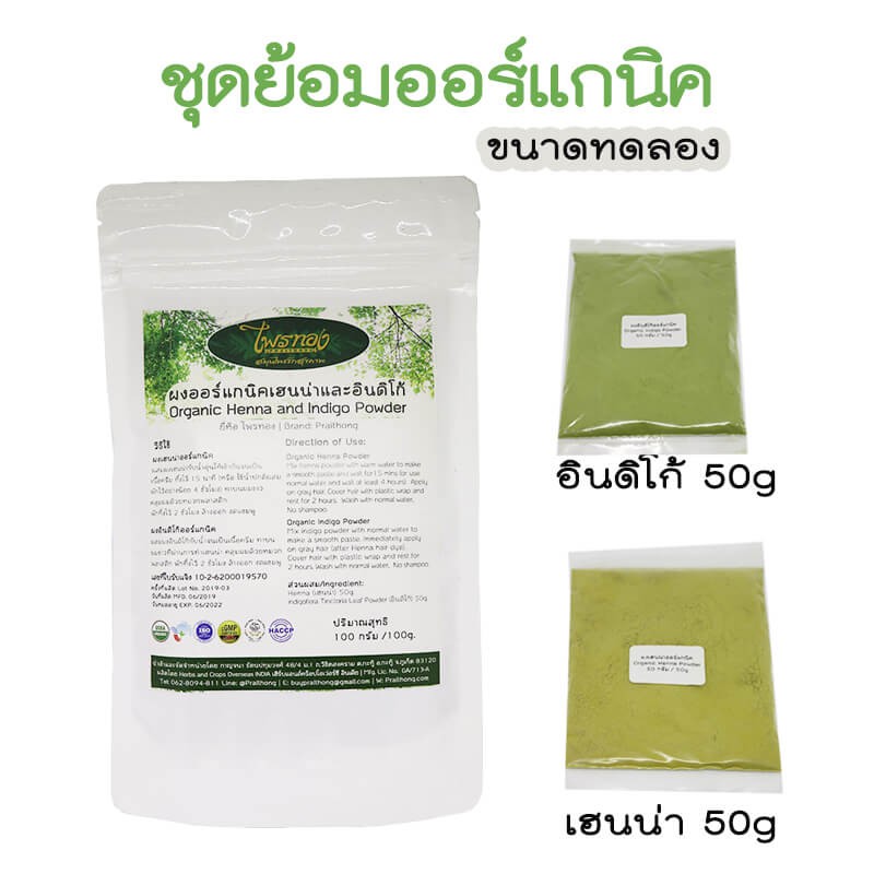ชุดย้อมผมออร์แกนิค เฮนน่า และ อินดิโก้ 100 กรัม ยาย้อมผม ไม่มีสารเคมี สำหรับ ใช้หมักผม ปิดผมขาว บำรุงเส้นผม สีธรรมชาติ