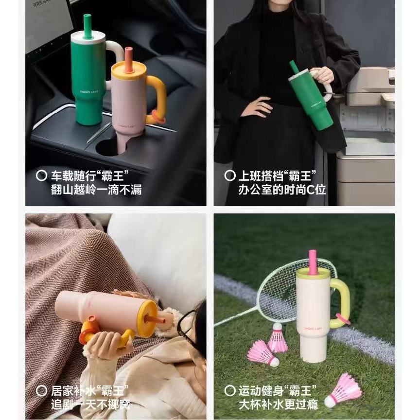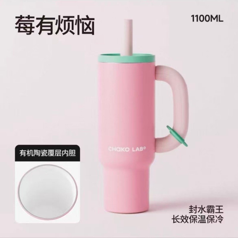 Chakolab Hexu Thermos Cup Ceramic Liner Straw 1050ML ขวดน้ําความจุขนาดใหญ่ Overlord Ice Master