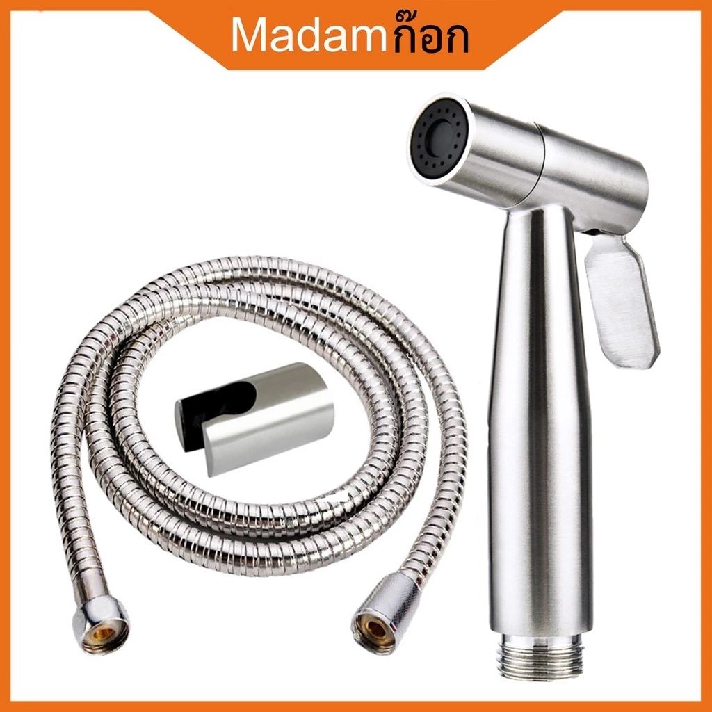 สายฉีดชำระ หัวฉีดก้น ครบชุด สแตนเลส 304 ไม่เป็นสนิม ก้านกดแข็งแรง ทนทาน ใช้งานง่าย