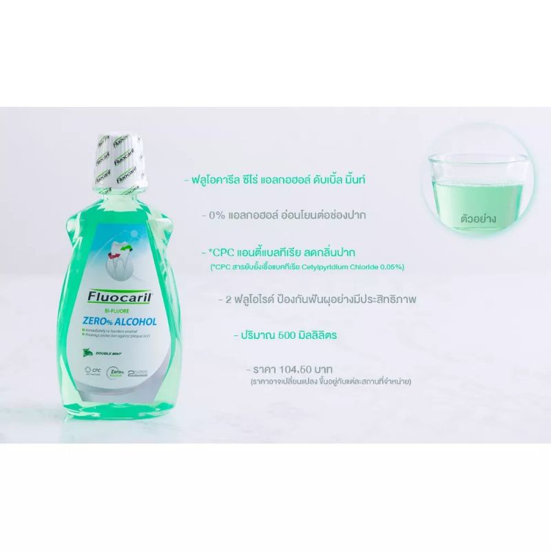 (1แถม1) Fluocaril Zero Alcohol Mouthwash 500ml.ฟลูโอคารีล ซีโร่ แอลกอฮอล์ น้ำยาบ้วนปาก 500มล.