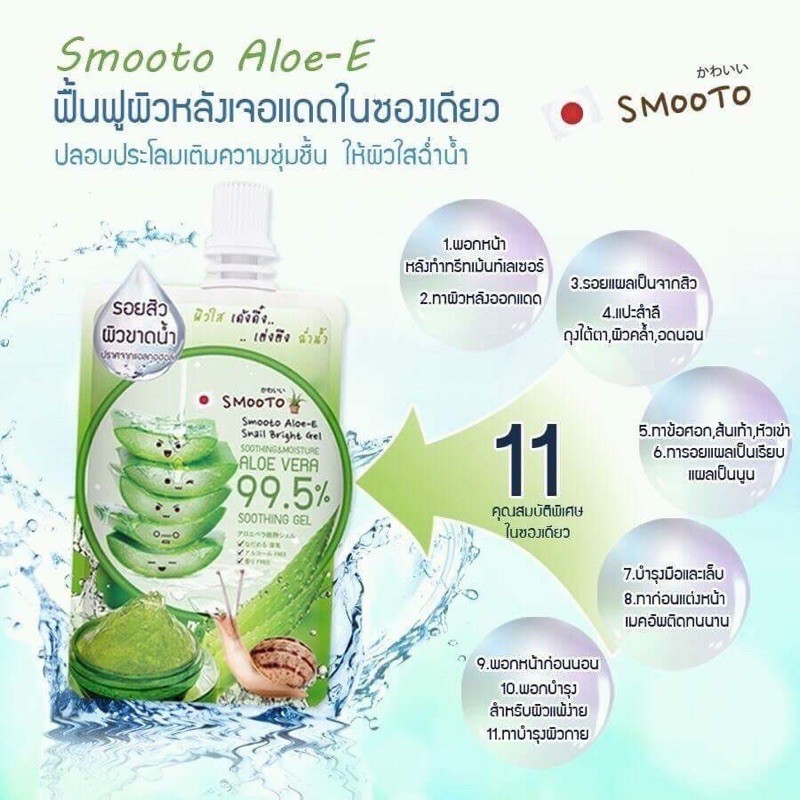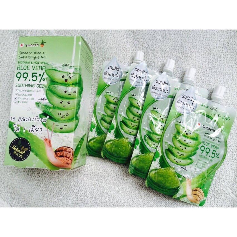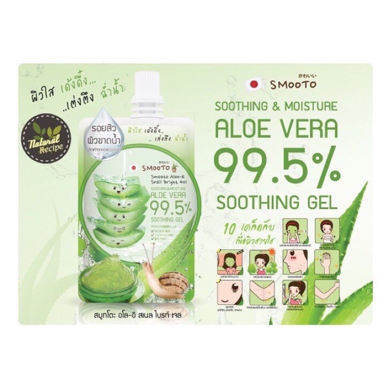 Smooto Soothing & Moisture Aloe Vera 99.5% Soothing Gel สมูทโตะ อโล-อี สเนล ไบรท์ เจล**1 กล่องมี 4ซอง**