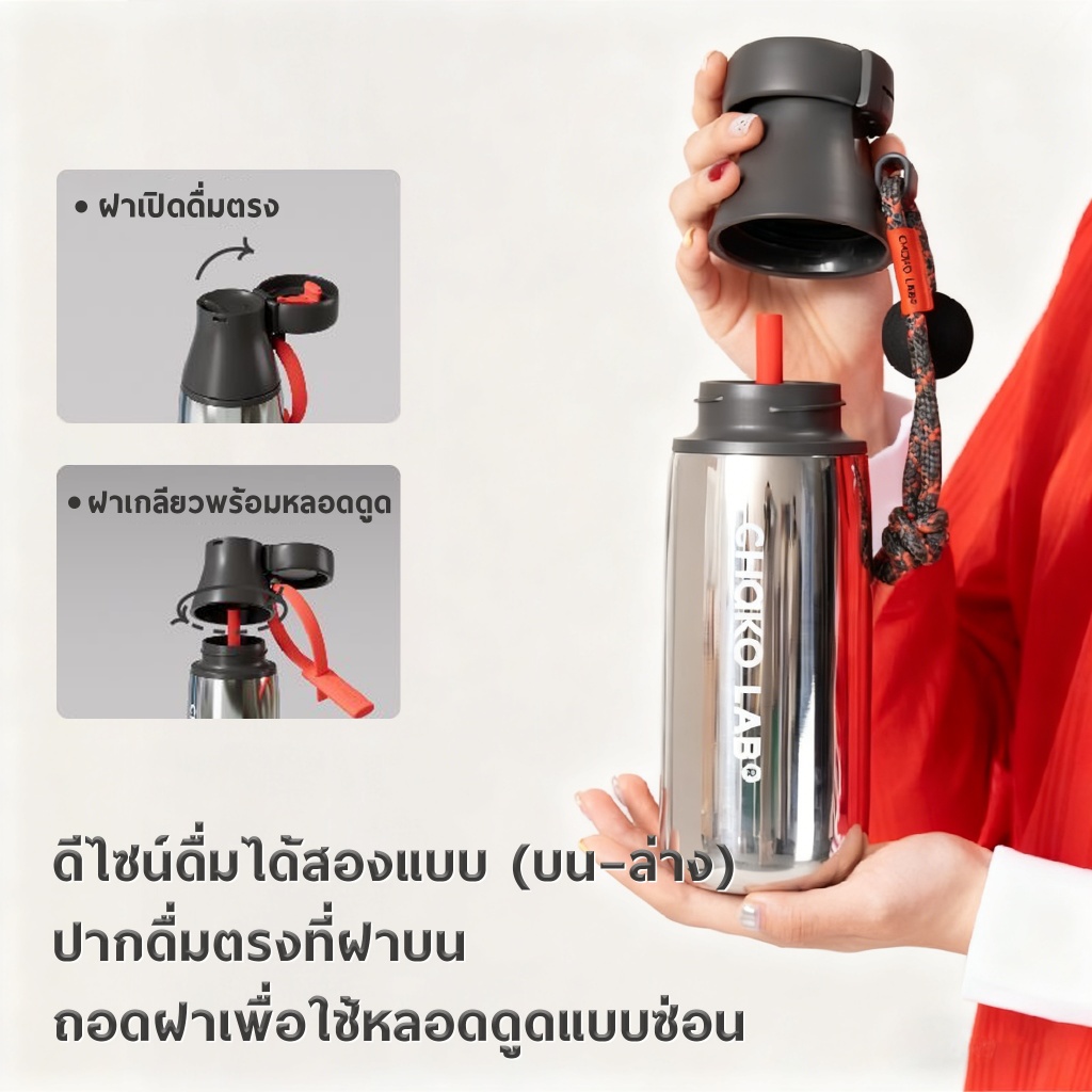 Chakolab Cup ถ้วยน้ําฟางความจุขนาดใหญ่ 316 สแตนเลสขวดน้ําเก็บความเย็น 520 ml