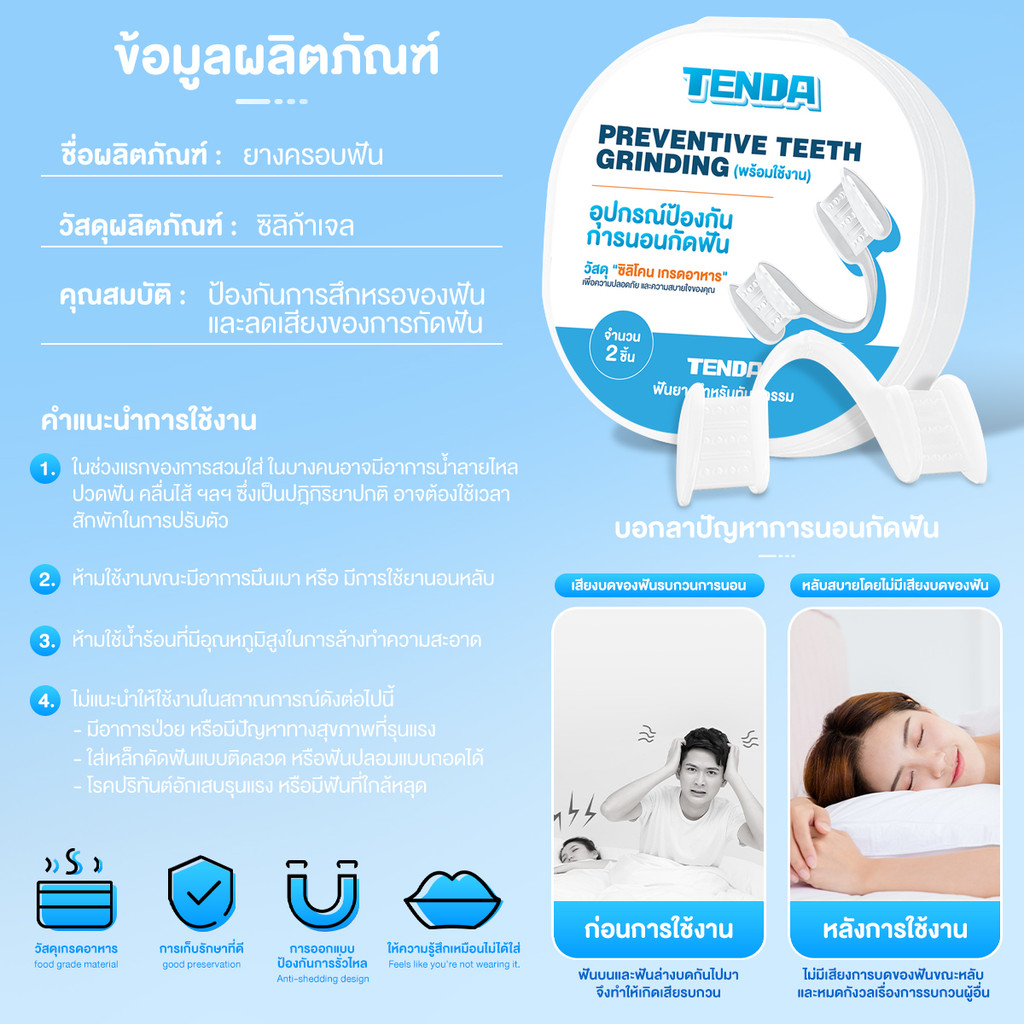 TENDA ฟันยางซิลิโคน ป้องกันการกัดฟัน ยางครอบฟันลดอาการนอนกัดฟันขณะนอนหลับ