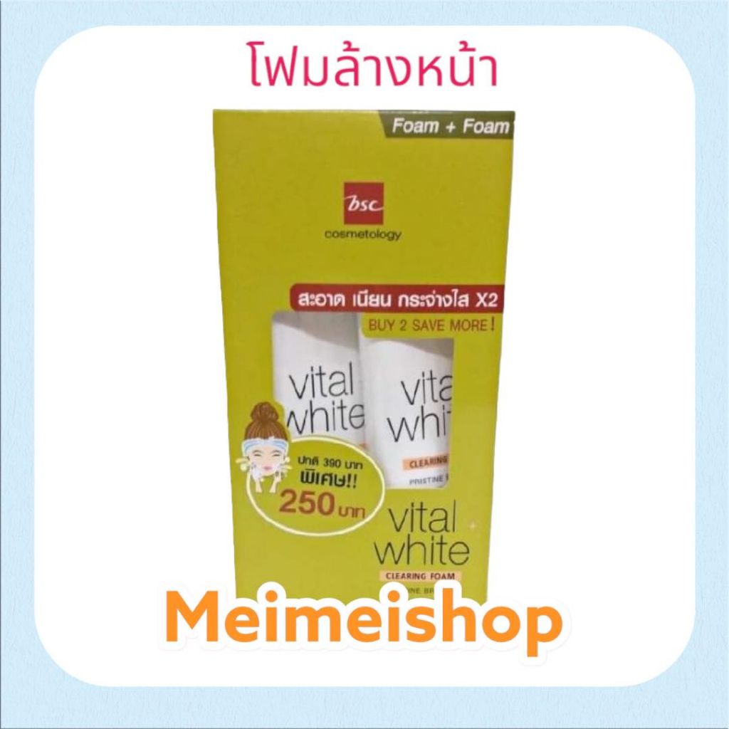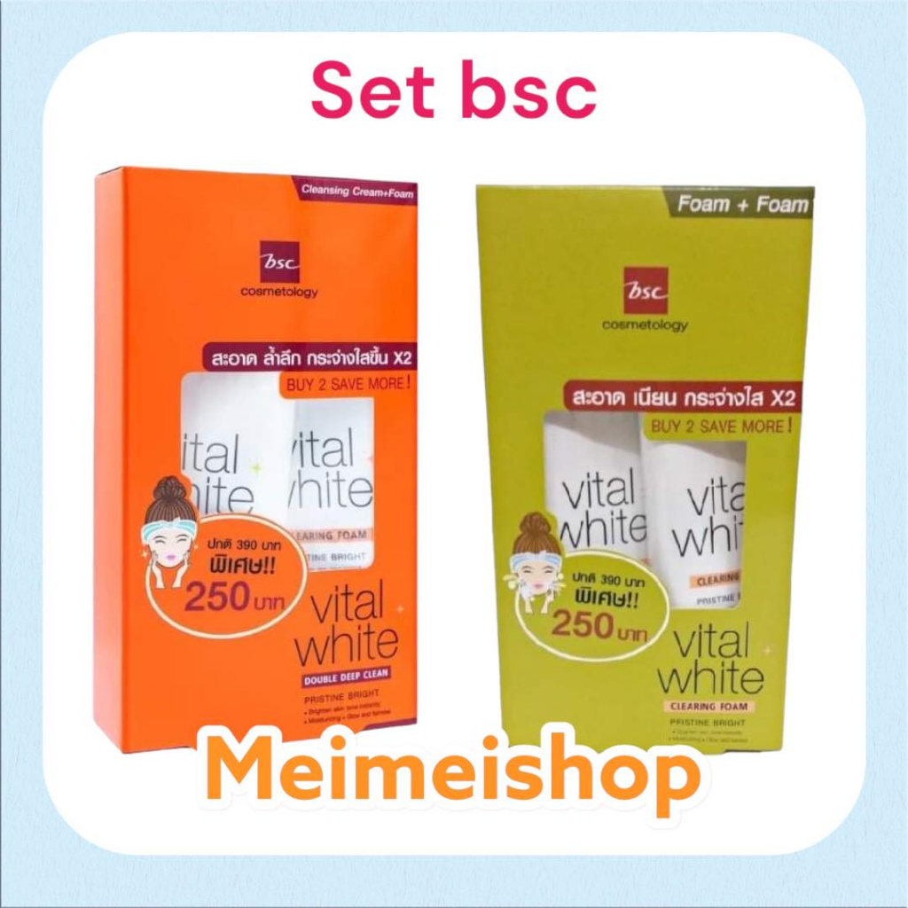BSC VITAL WHITE DOUBLE CLEANSING FOAM / VITAL WHITE CLEANSING CREAM บีเอสซี โฟม ครีมล้างเครื่องสำอาง ส้ม เขียว