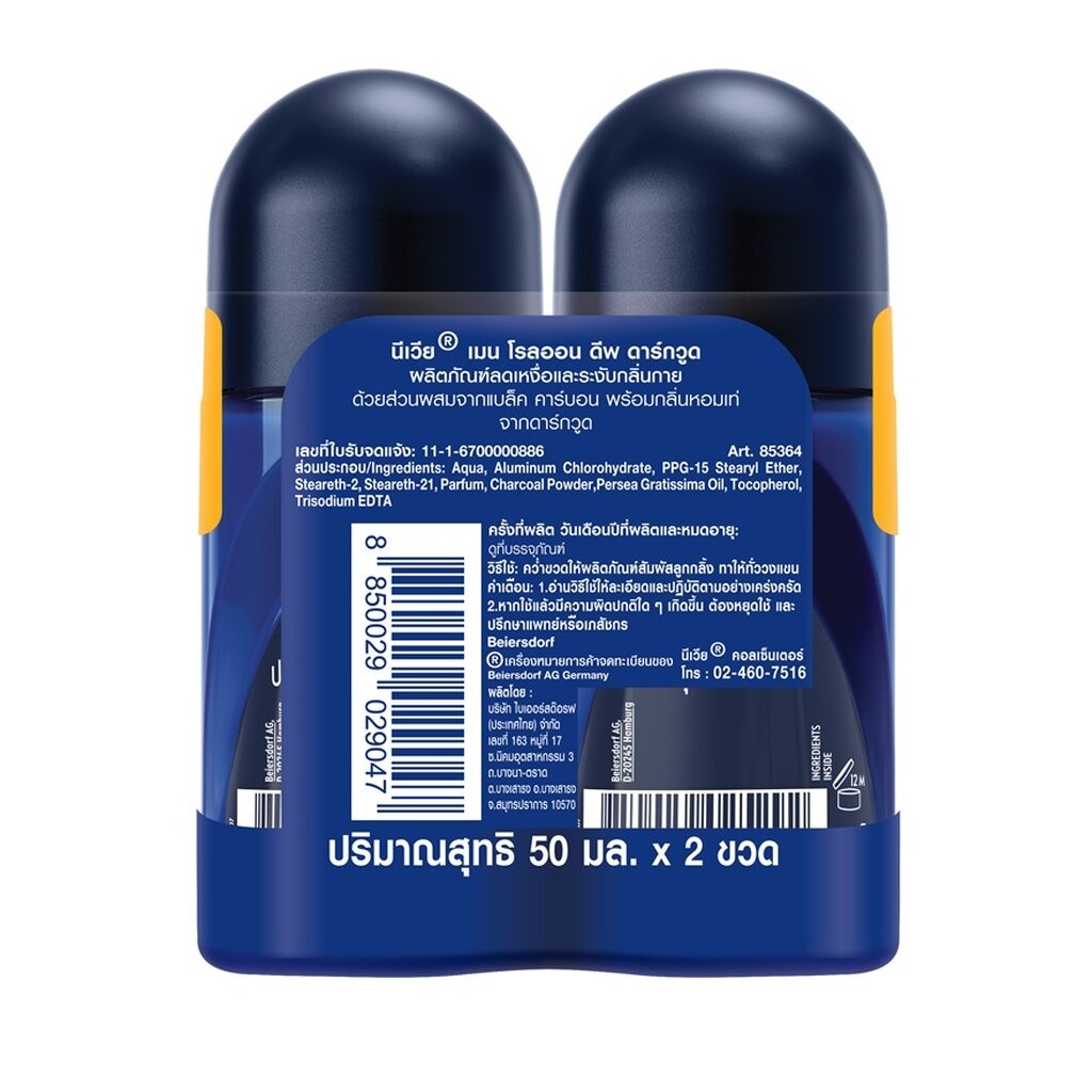 Nivea นีเวีย เมน โรลออน ดีพ ดาร์กวูด 50 มล.แพ็คคู่ ผู้ชาย โรลออนลดเหงื่อ ระงับกลิ่นกาย