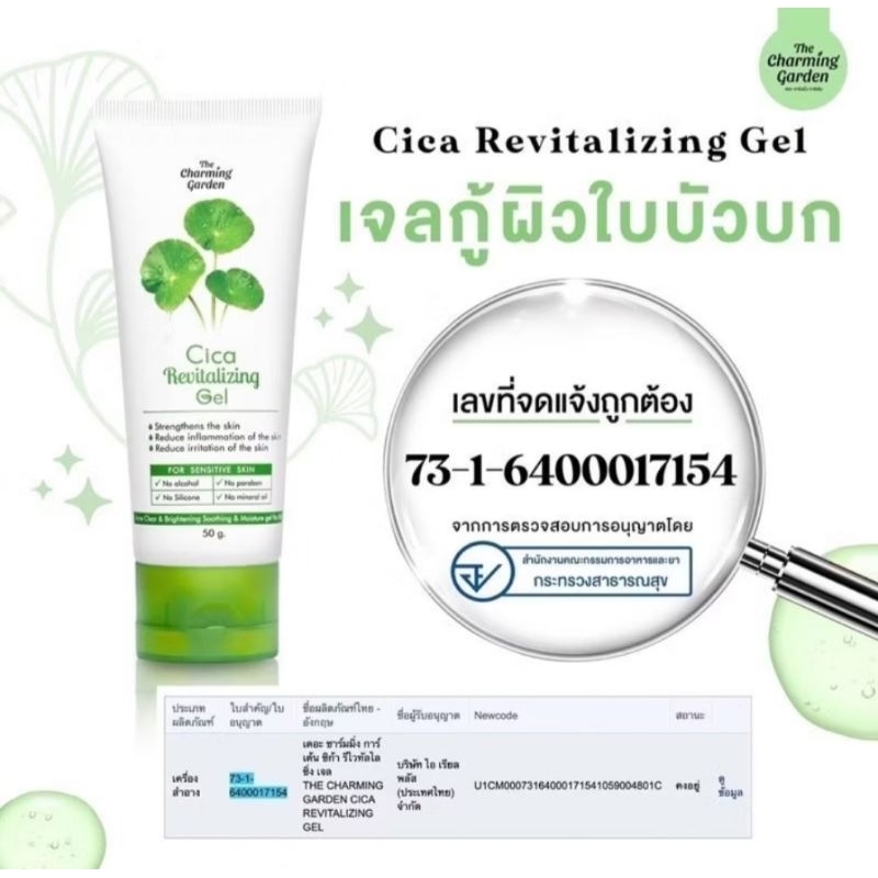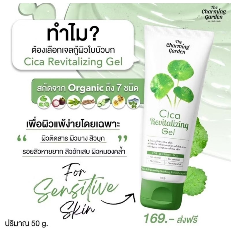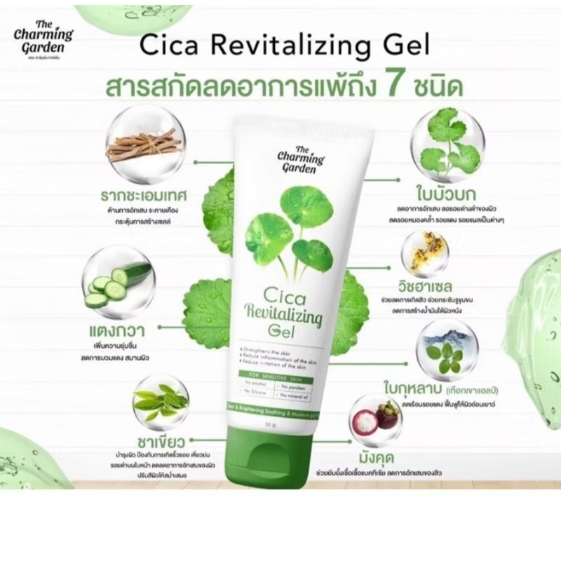 ส่งฟรี/มีไลฟ์ Cica Revitalizing Gel เจลกู้ผิว ใบบัวบก🍀เจล 50 g. & สบู่ 50 g. & ครีม 6 g.🍀The charming garden 50 g.