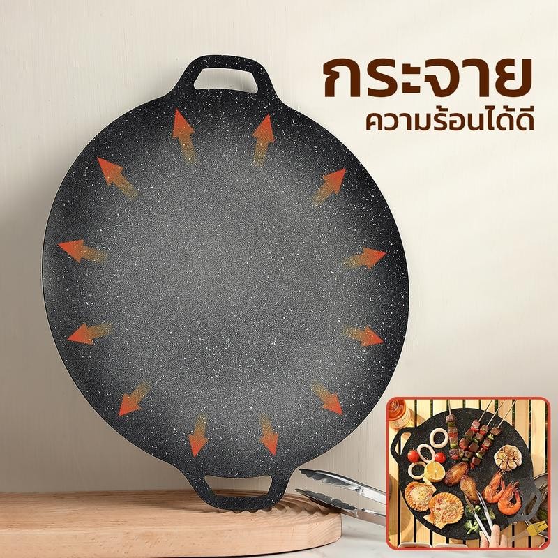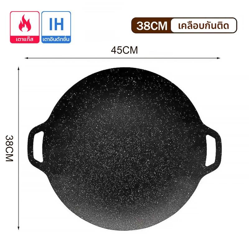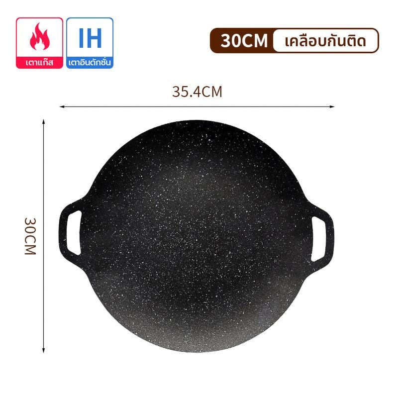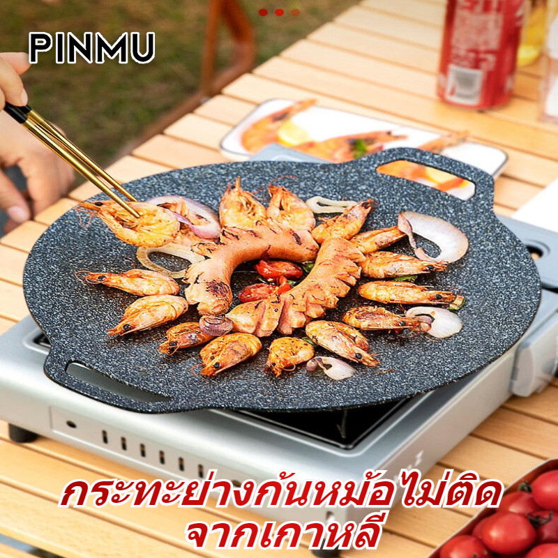 PINMU [กระทะย่างเกาหลี] กระทะย่างกลมเคลือบไม่ติดขนาด 28/30/32/34/36/38/42CM