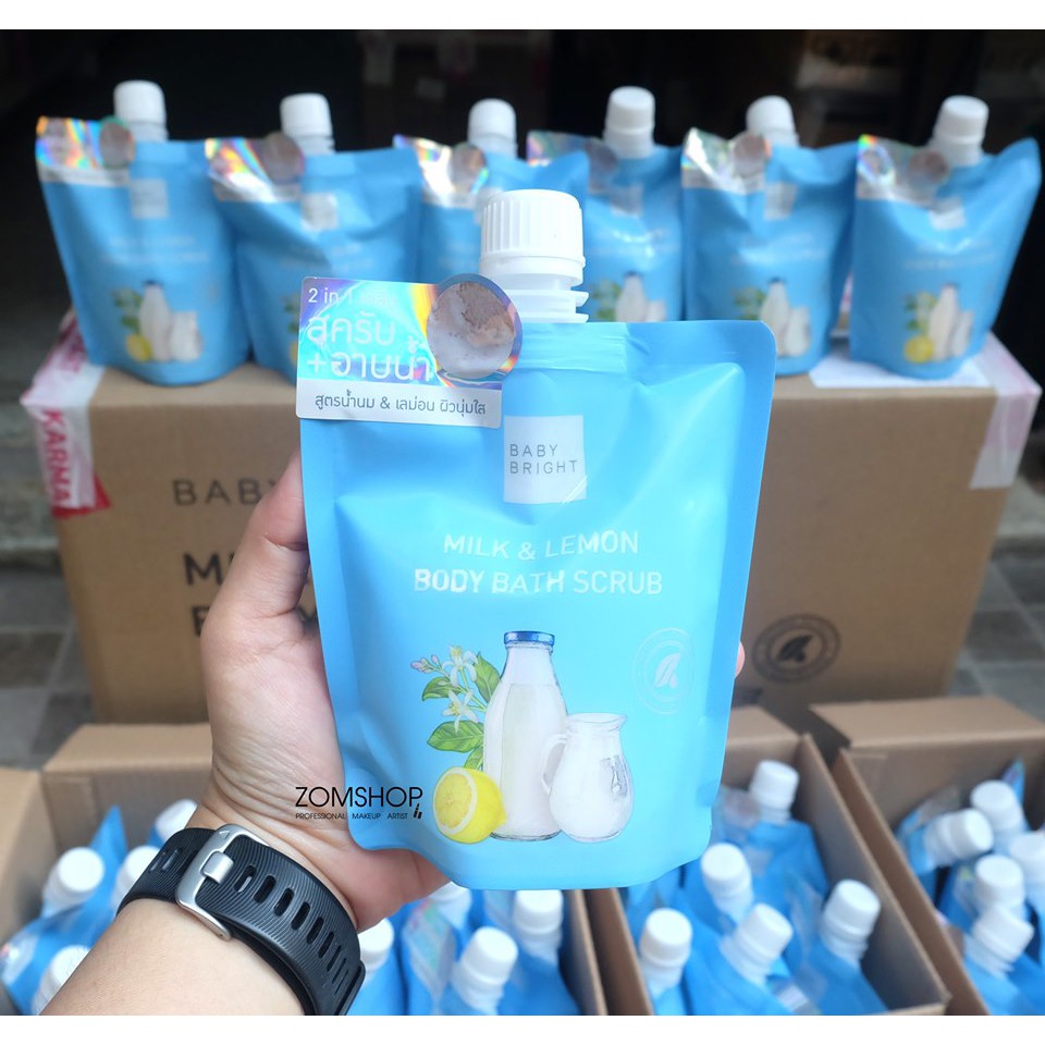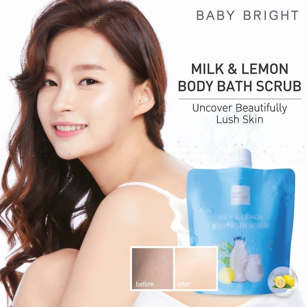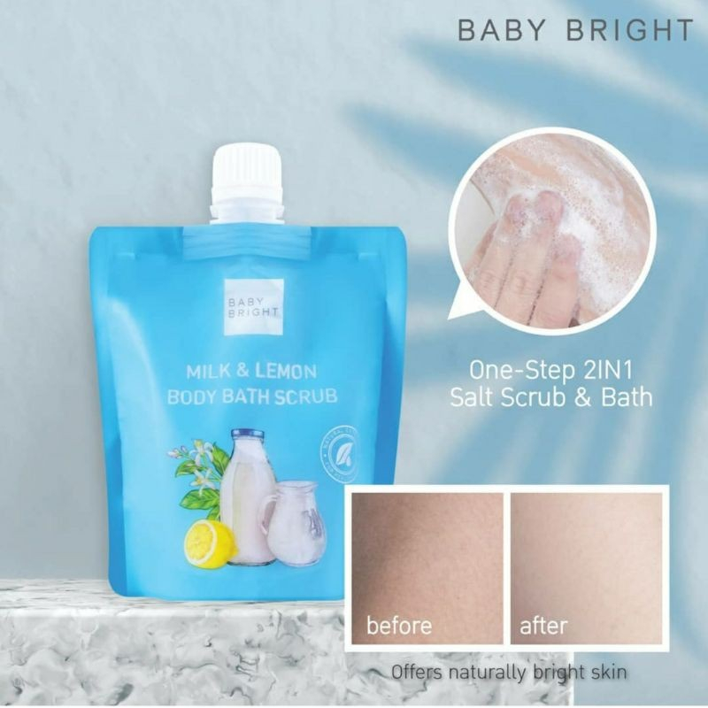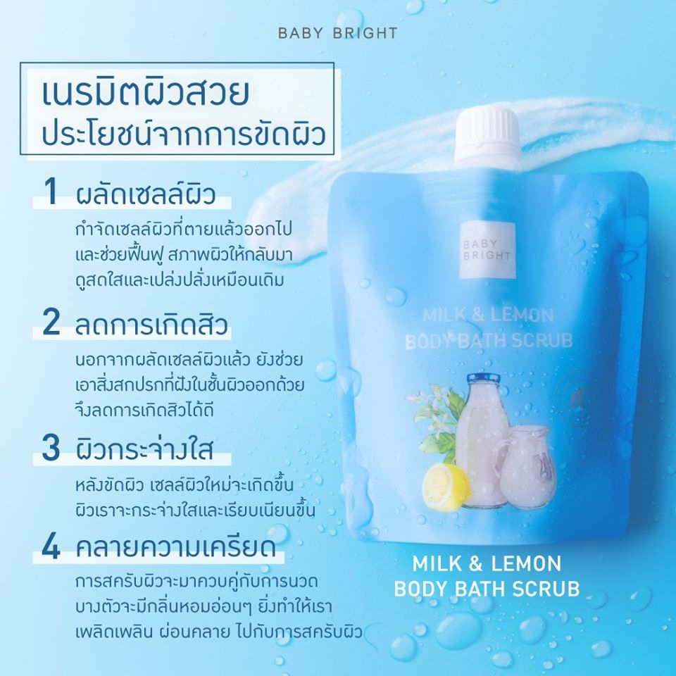 【ถุงฟ้า】เกลือสครับอาบน้ำ【สูตรน้ำนม&เลมอน】MILK & LEMON BODY BATH SCRUB 250g. BABY BRIGHT