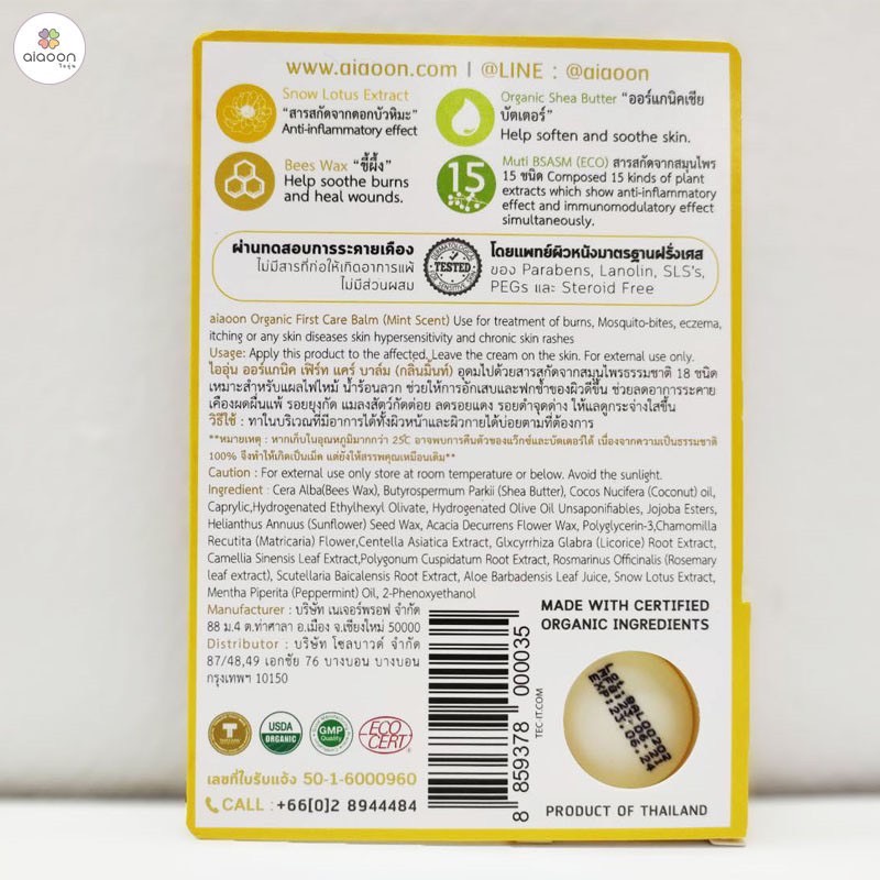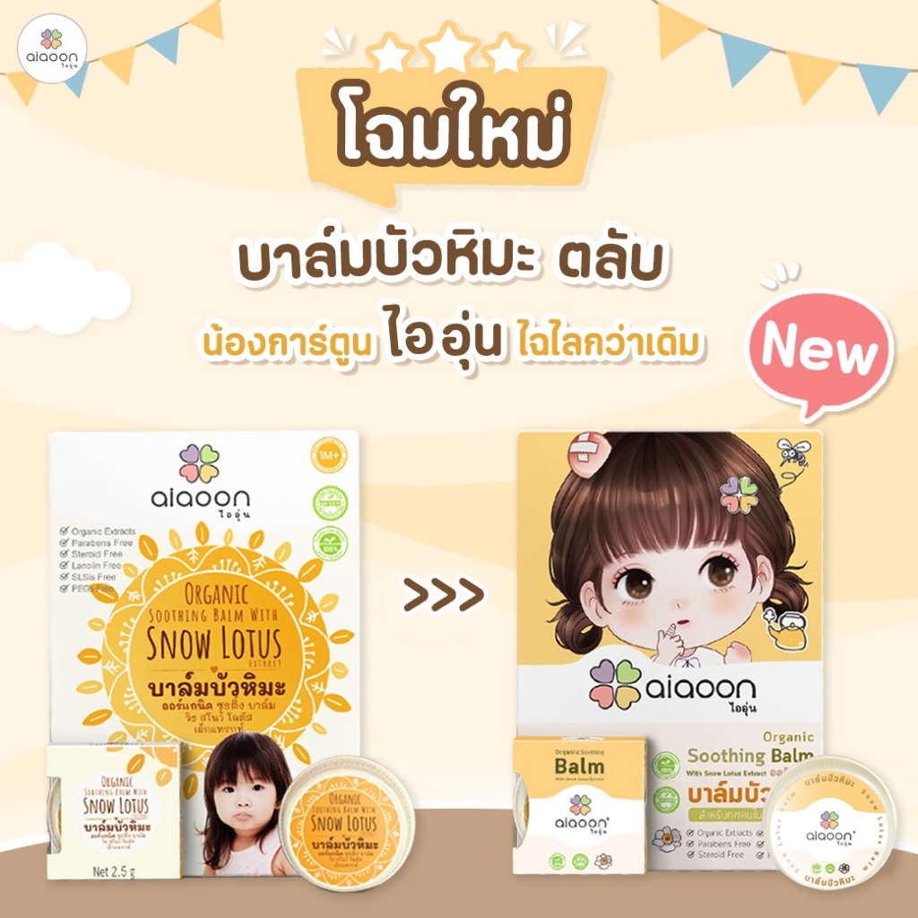 Aiaoon บาล์มบัวหิมะ ออร์แกนิค (Organic snow lotus gentle care balm) (แบบตลับ2.5g.)