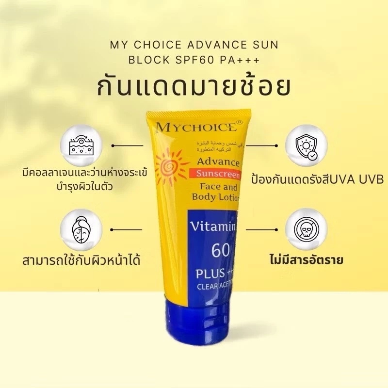(1 หลอด) MYCHOICE Advance Sun Block ครีมกันแดดมายช้อยส์ สำหรับผิวหน้าและผิวกาย (150g)