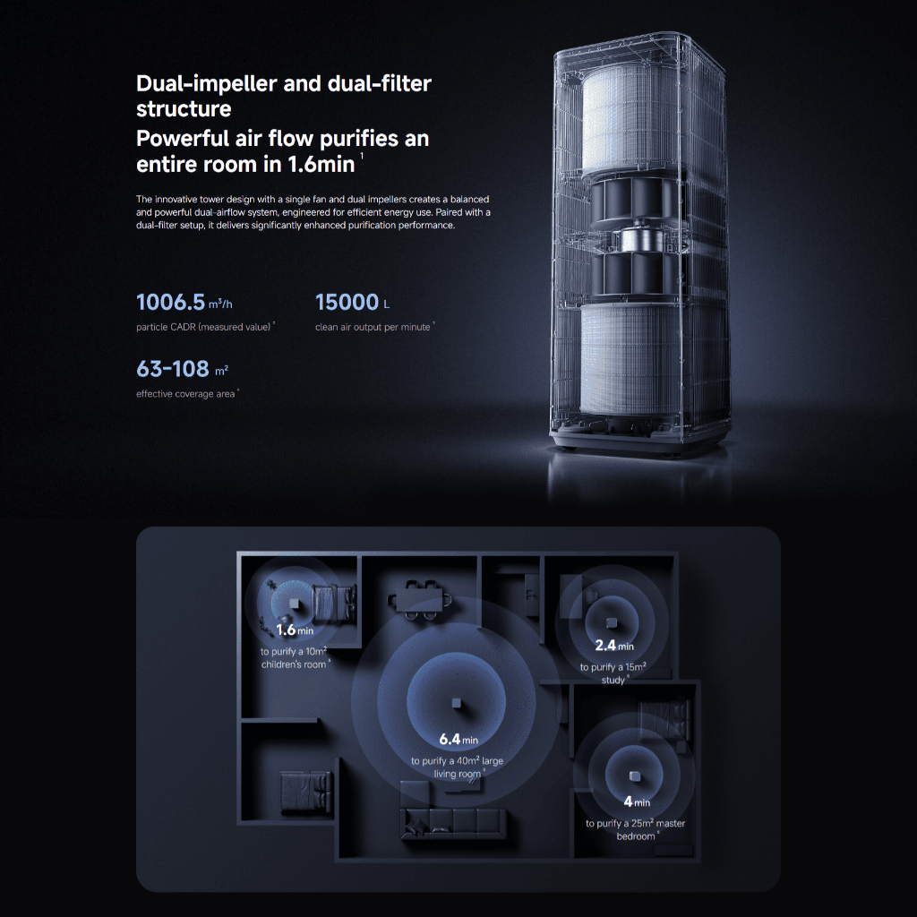 Xiaomi Mijia Smart Air Purifier Max ฟอกอากาศ I 1006.5m³/h อนุภาค CADR I กรองอากาศ I มีล้อเลื่อน เครื่องฟอกอากาศในห้องนอน