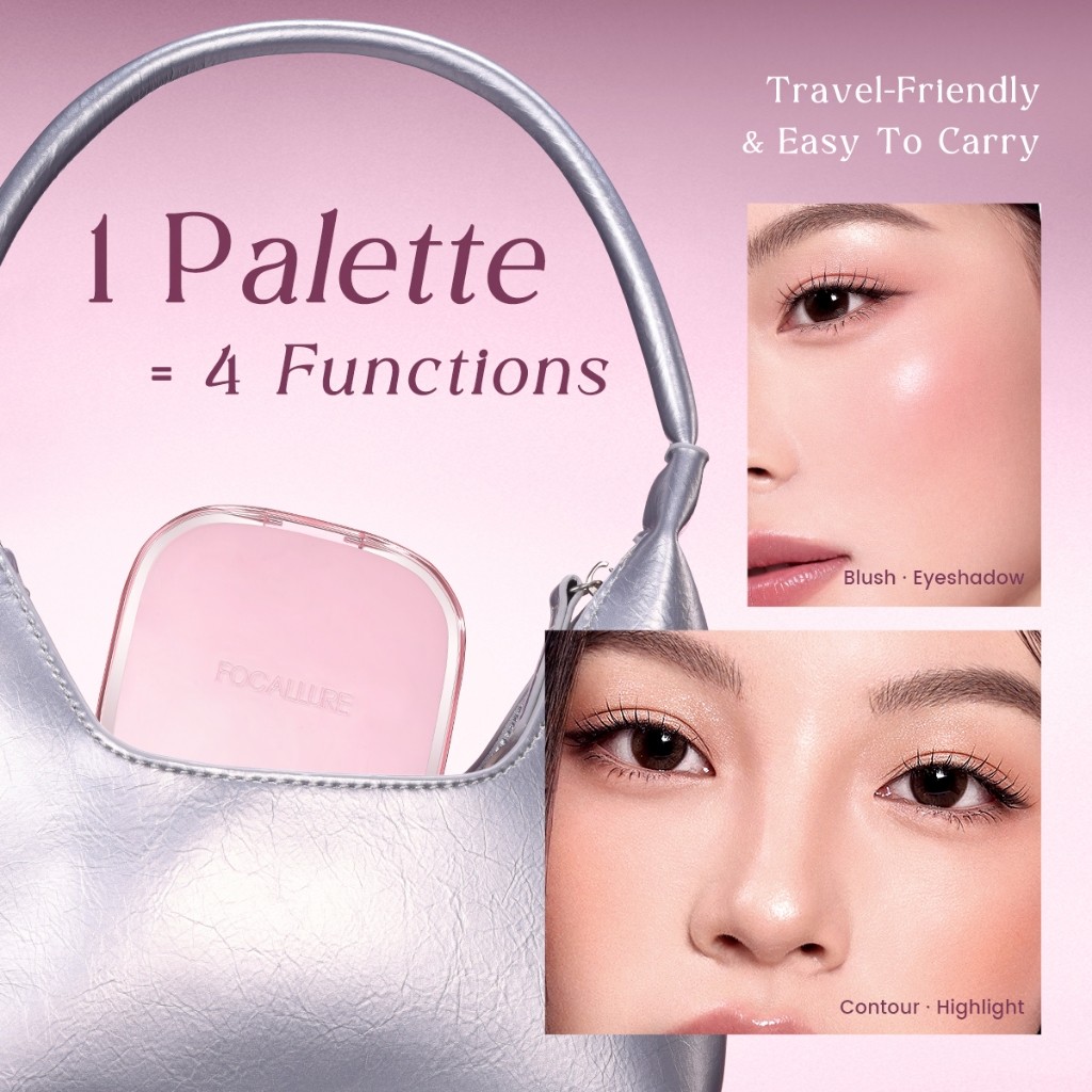 FOCALLURE Prism Multi-use Glow Blush Highlighter Contour Face Palette Pigmented Blendable 4 In1