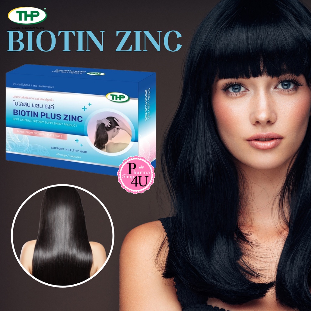 THP BIOTIN PLUS ZINC 60 เม็ด ไบโอติน ผสม ซิงค์ BIOTIN ZINC [9586]