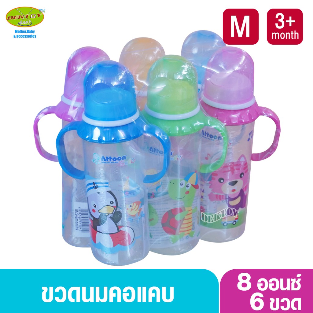 Attoon แอทตูนขวดนมราคาถูก 8 ออนซ์แขนจับแพ็ค6ขวด 101268-R