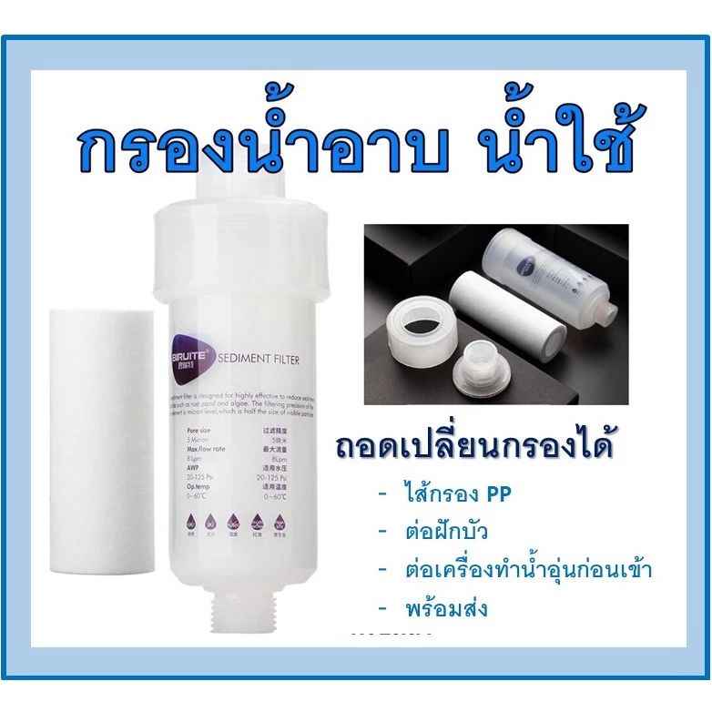 BIRUITE ที่กรองน้ำฝักบัว 🚿 กรองน้ำประปา ถอดเปลี่ยนไส้กรองได้ อ่อนโยนต่อผิว