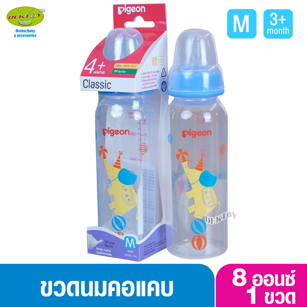 1 ขวด Pigeon พีเจ้น ขวดนมคอมาตรฐาน RPP เซอคัส 8ออนซ์ มาพร้อมจุกคลาสสิค M