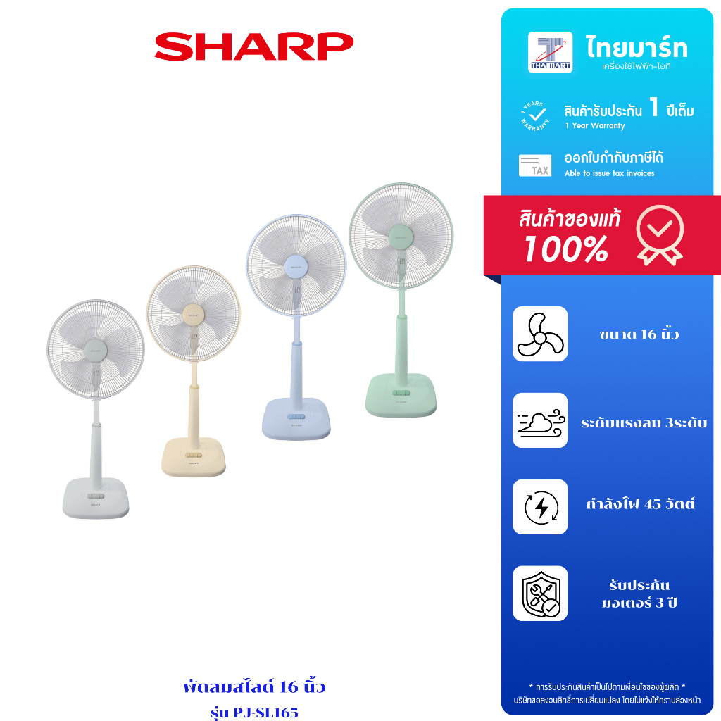SHARP พัดลมสไลด์ 16 นิ้วรุ่น PJ-SL165 รุ่นใหม่ รับประกันสินค้า 1 ปี