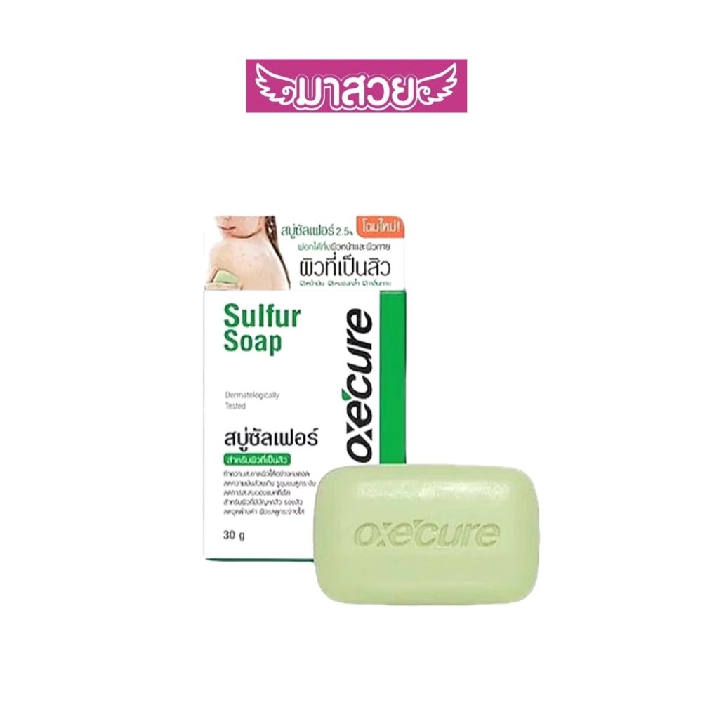 สบู่ Oxecure Sulfur Soap (อ๊อกซีเคียว ซัลเฟอร์ โซป) ขนาด 30 กรัม สำหรับผู้ที่มีปัญหาสิว รอยสิว