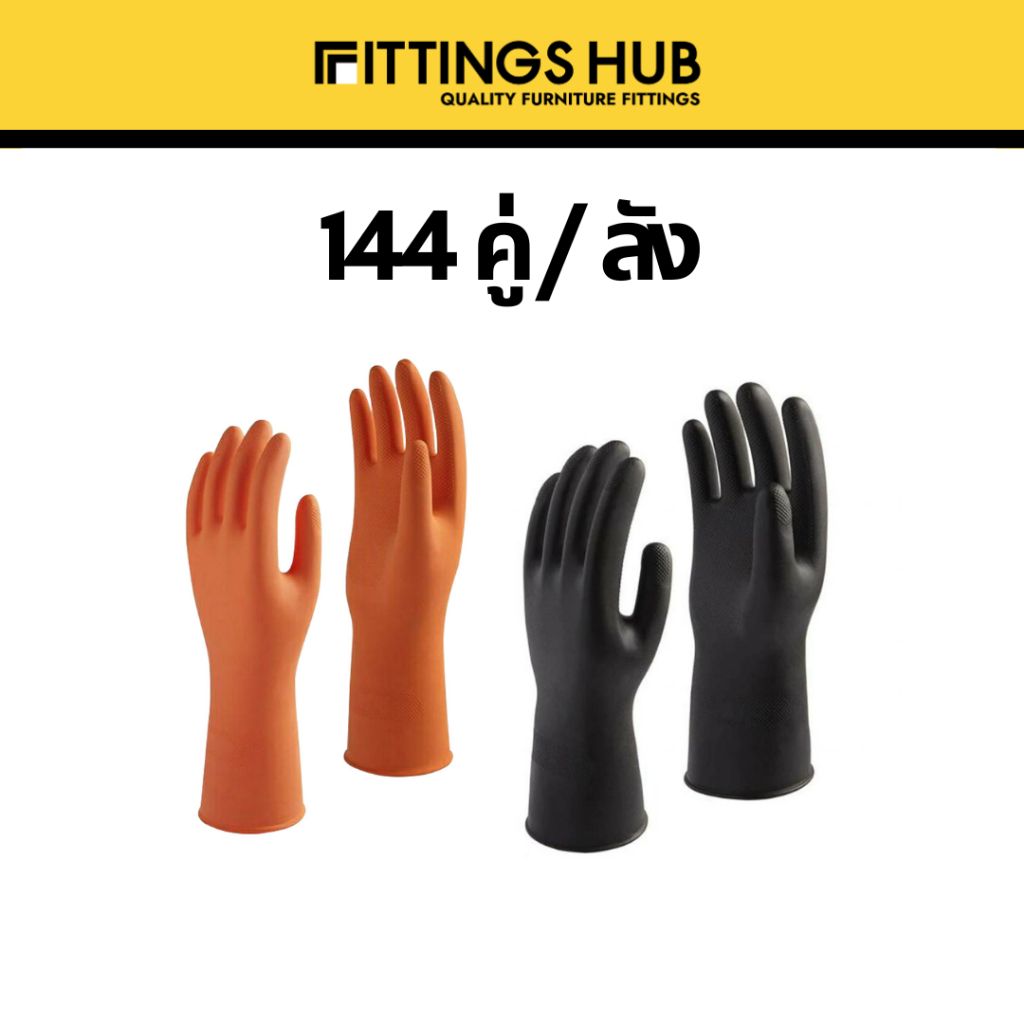 (ยกลัง 144คู่) ถุงมือยางทำความสะอาด ถุงมือแม่บ้าน กำมะหยี่ด้านใน(กระทิง) กลิ่นมะนาว ใส่สบาย ยางธรรมชาติ สีส้ม/ดำ