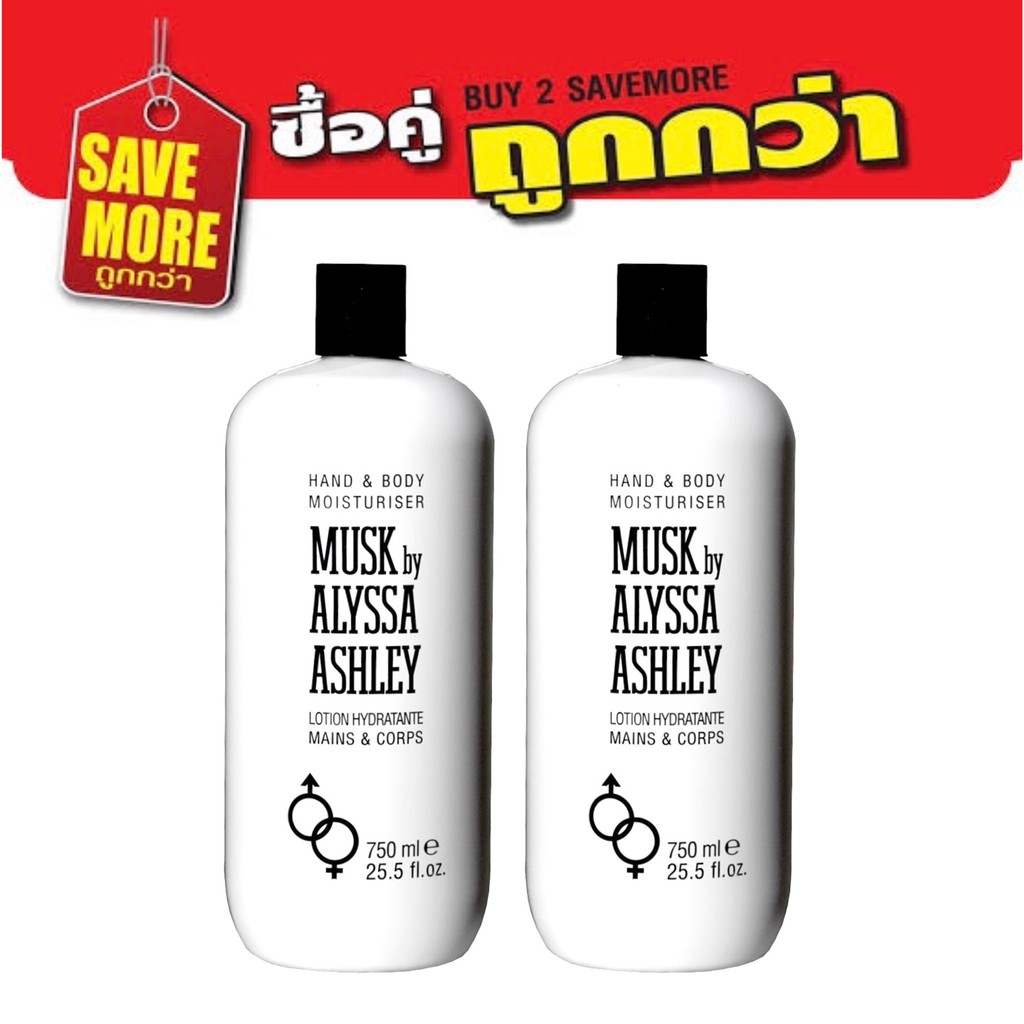 แพ็คคู่สุดคุ้ม Alyssa Ashley Hand & Body Moisturizer Musk Lotion อลิสซ่า แอชลี่ โลชั่นบำรุงผิวกาย ฝาดำ ขนาดใหญ่ 750ml.