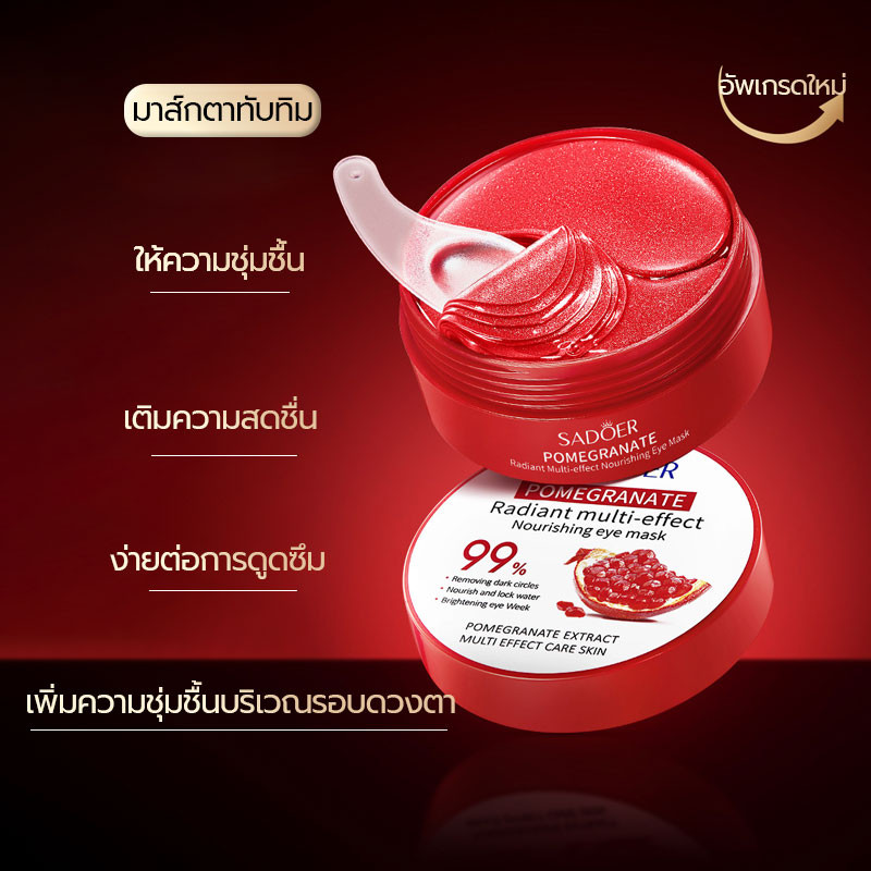 【ซื้อ 1 แถม 1】มาส์กรอบดวงตา Sadoer มาส์กรอบดวงตาสารสกัดจากทับทิม ให้ความชุ่มชื้นแก่ผิวรอบดวงตา ลดเลือนรอยคล้ำและริ้วรอย