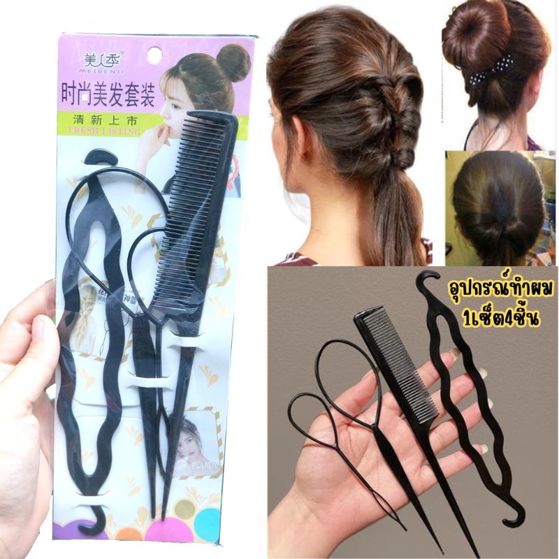 【1ชุด สีดำ】อุปกรณ์ทำผม DIY ชุดอุปกรณ์ถักเปีย เกล้าผม จัดแต่งทรงผม