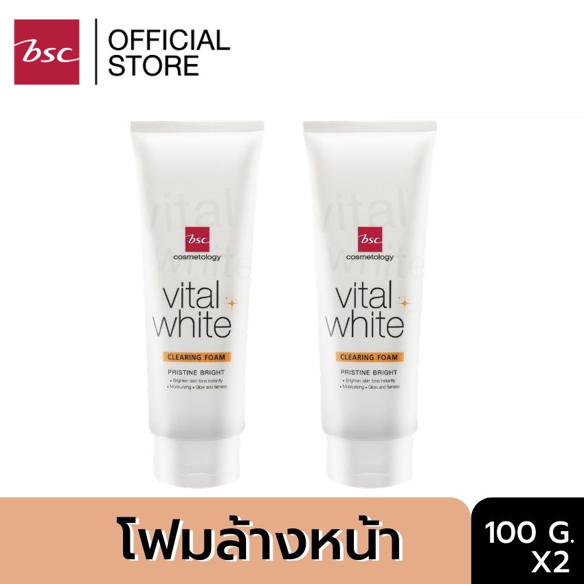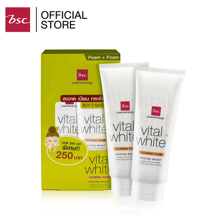 BSC VITAL WHITE DOUBLE CLEANSING FOAM แพคคู่ โฟมล้างหน้าฟองโฟมนุ่มละมุนดุจวิปครีม ช่วยทำความสะอาดสิ่งสกปรกบนใบหน้า
