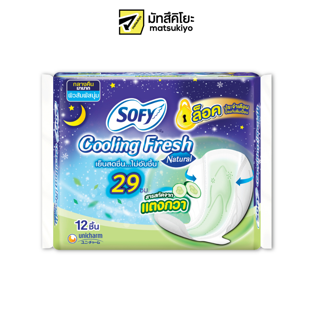 Sofy Cooling Fresh Natural Sanitary Napkin Night Slim Wing 29cm. 12pcs.