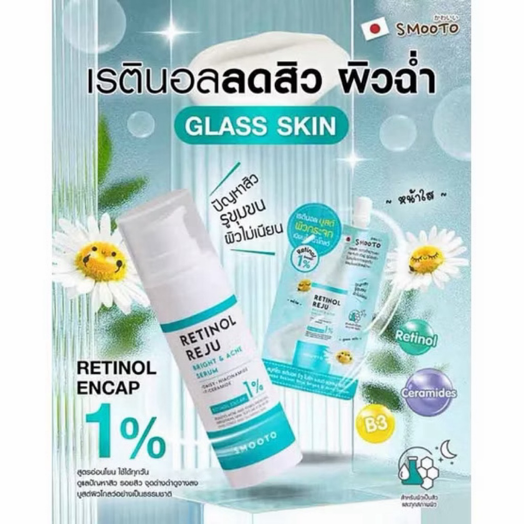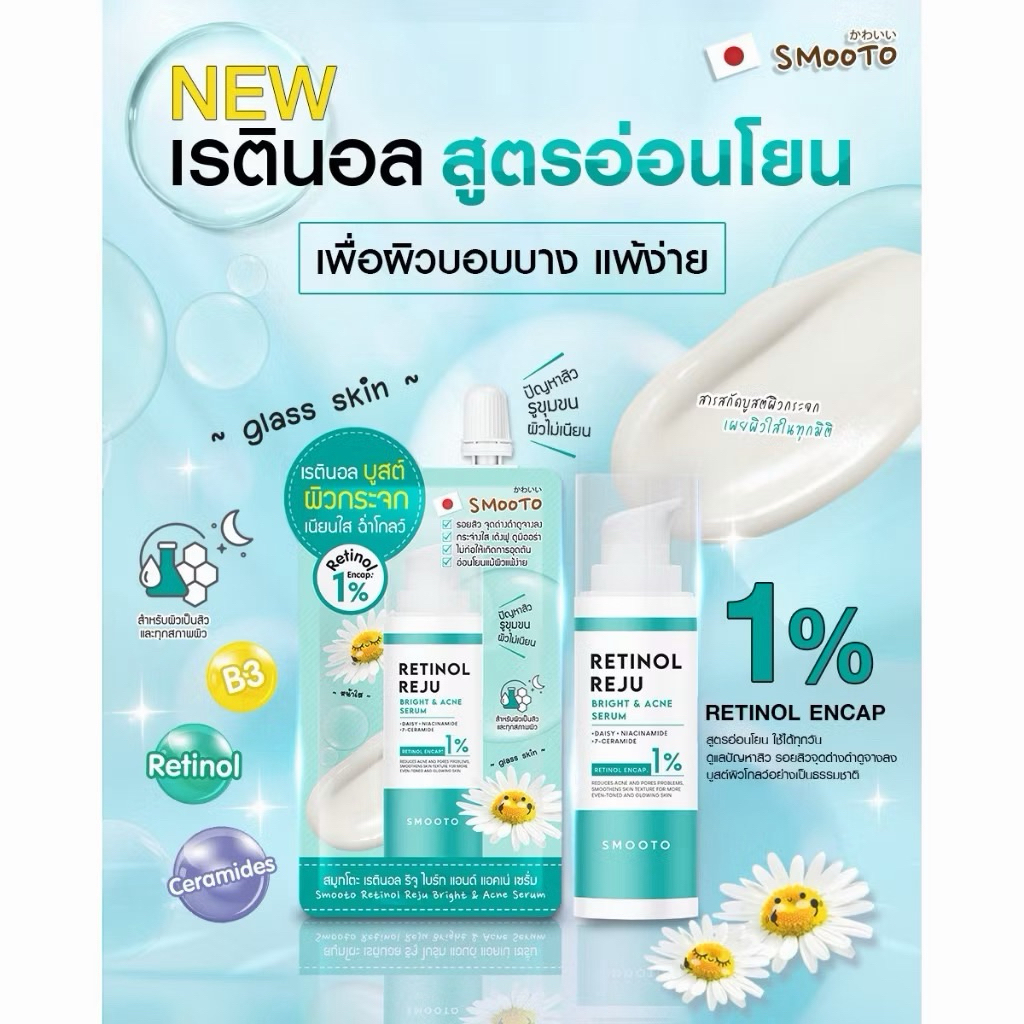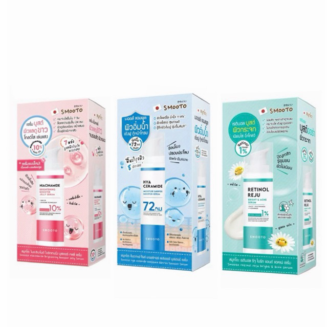 สมูทโตะ เรติดนอล รีจูไบร์ แอนด์แอคเน่/มอยส์แอมีพลู/ไนอาซินาไมด์ ไบร์ทเทนนิ่ง บูสเตอร์ เจลลี่ เซรั่ม มี 3 สูตรให้เลือกจ้า