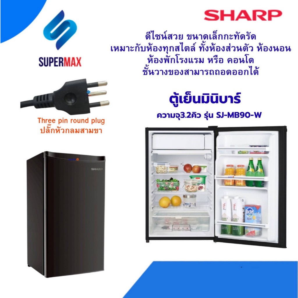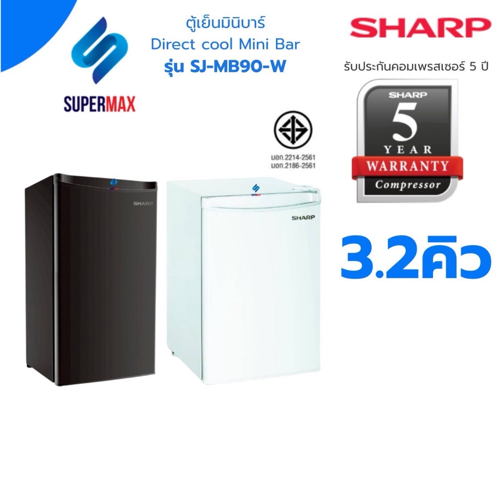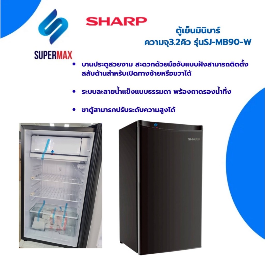 SHARP ตู้เย็นมินิบาร์ 1 ประตู ขนาด 3.2 คิว รุ่น SJ-MB90 สีดำ Black ระบบประหยัดไฟฟ้า รับประกันคอม 5 ปี
