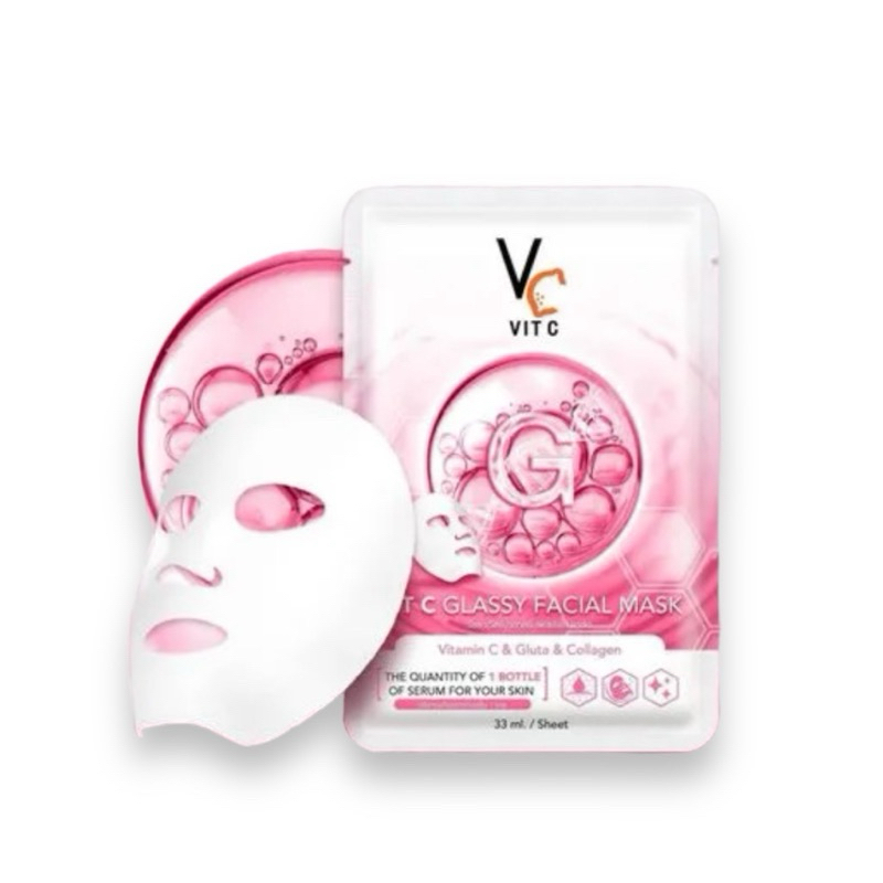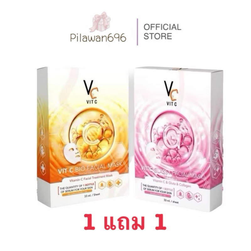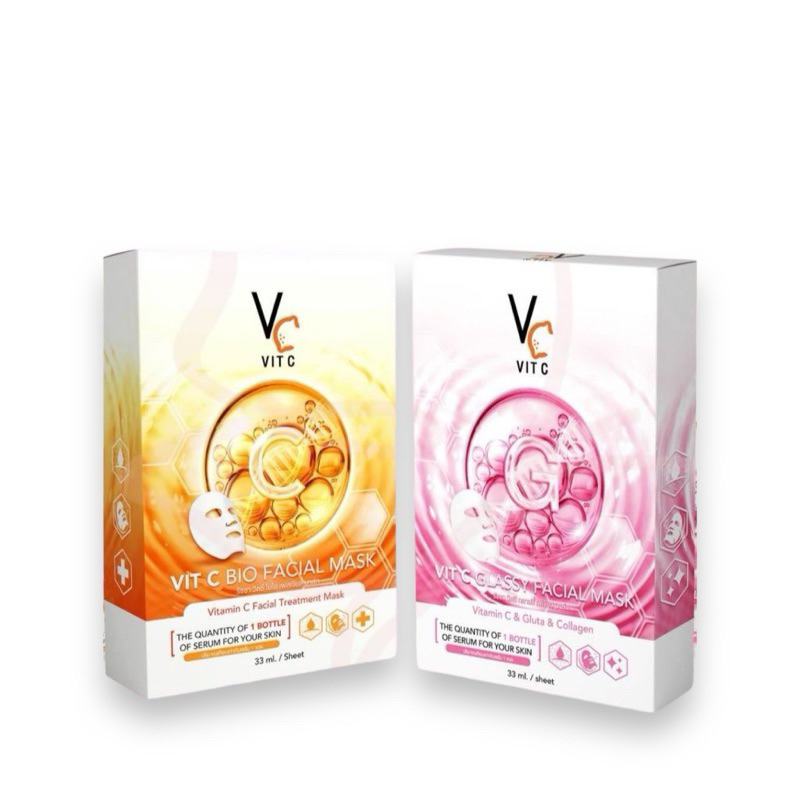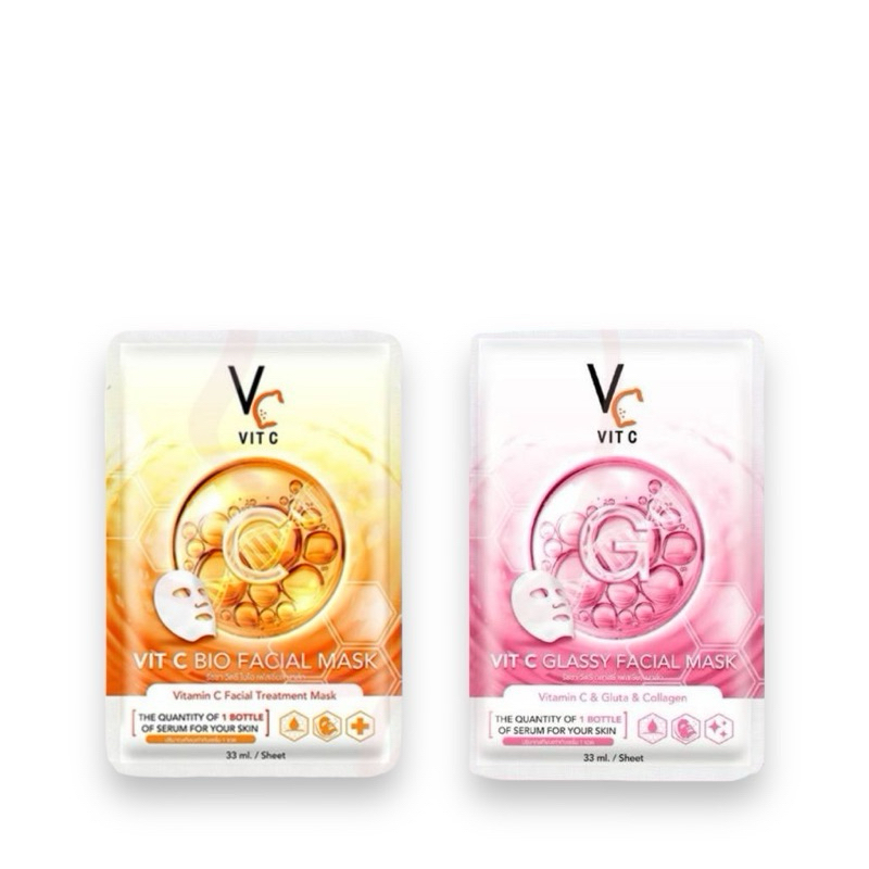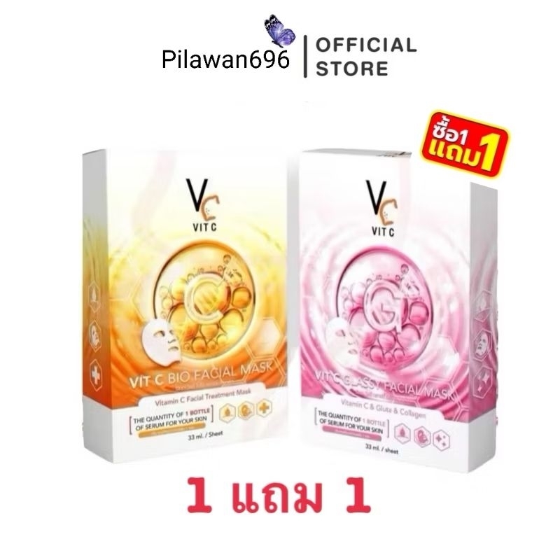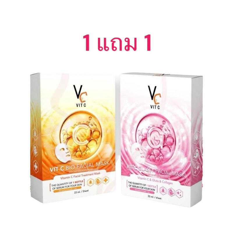 ( 1 แถม 1 ) มาส์กหน้า VC น้องฉัตร Ratcha Vit c bio facial mask Mask / Vit C Glassy Facial Mask (บรรจุ 6 แผ่น)