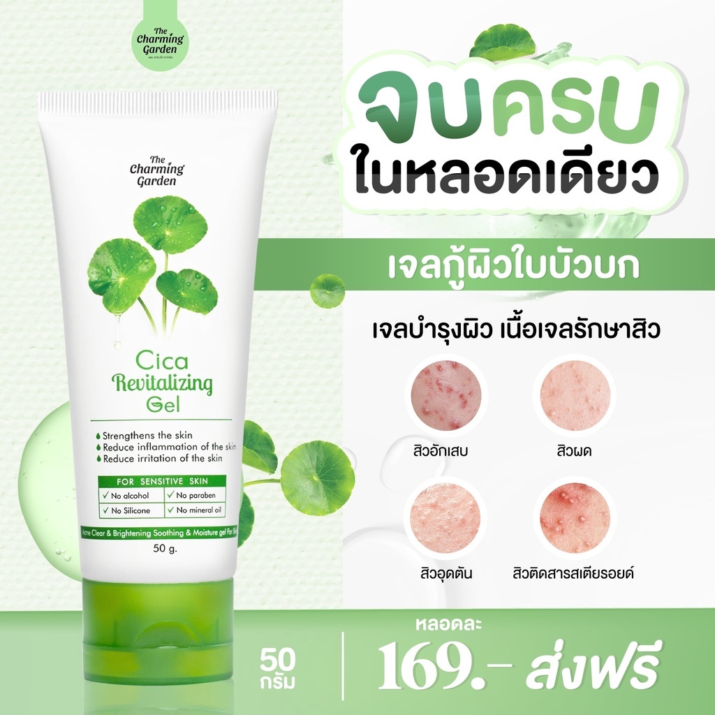 Cica Revitalizing Gel เจลกู้ผิวใบบัวบก /เจลมะเขือเทศ กู้ผิวโทรม Tomato Revitalizing Gel 50 g. The charming garden