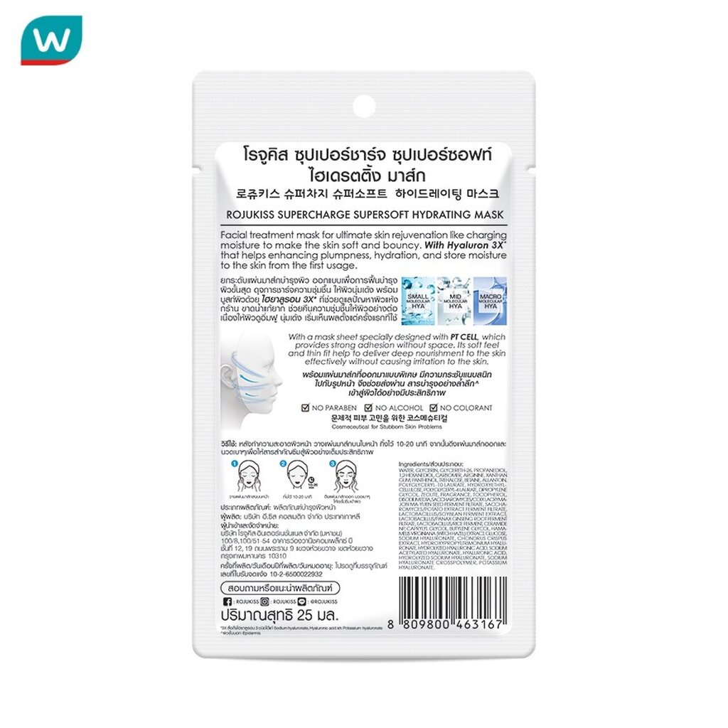 Rojukiss โรจูคิส ซุปเปอร์ชาร์จ ซุปเปอร์ซอฟท์ ไฮเดรตติ้ง มาส์ก 1 แผ่น มาสก์หน้า ผิวแห้งกร้าน
