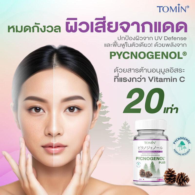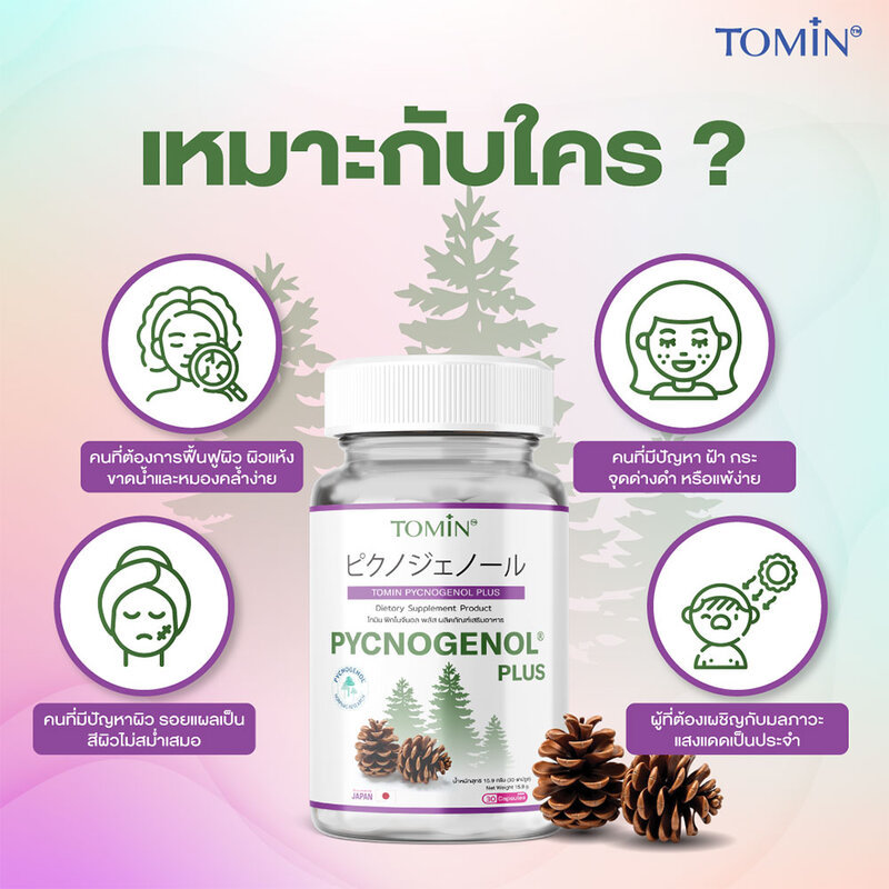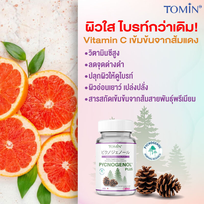 Tomin Pycnogenol Plus 30 Capsules โทมิน ผลิตภัณฑ์เสริมอาหาร.