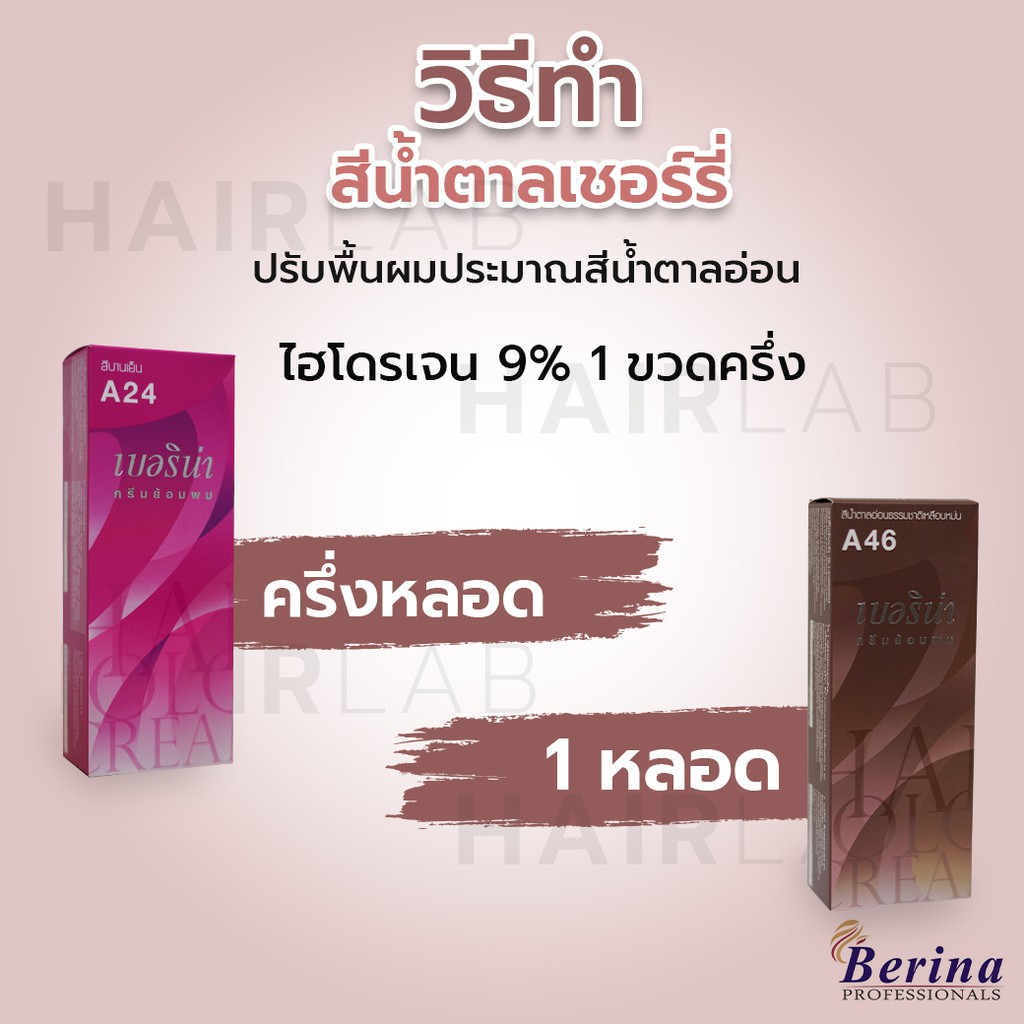 พร้อมส่ง เซตสีผมเบอริน่า Berina hair color Set A24+A46 สีน้ำตาลเชอร์รี่ สีผมเบอริน่า สีย้อมผม ครีมย้อมผม