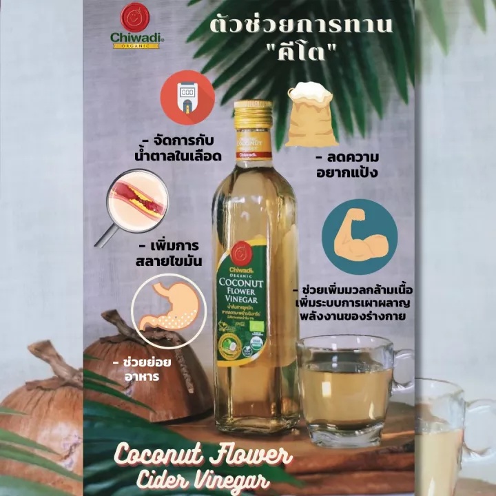 Chiwadi น้ำส้มสายชูหมักจากดอกมะพร้าวอินทรีย์ Coconut Flower Vinegar (500ml)