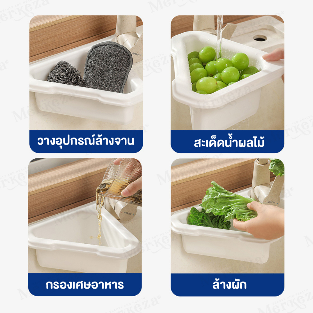 [SALE] Utookii Drain Basket ตะกร้า สามเหลี่ยม ระบายน้ำ ตะขอเกี่ยว กรอง เศษอาหาร วางฟองน้ำ ล้างผัก ตะแกรง อ่างล้างจาน